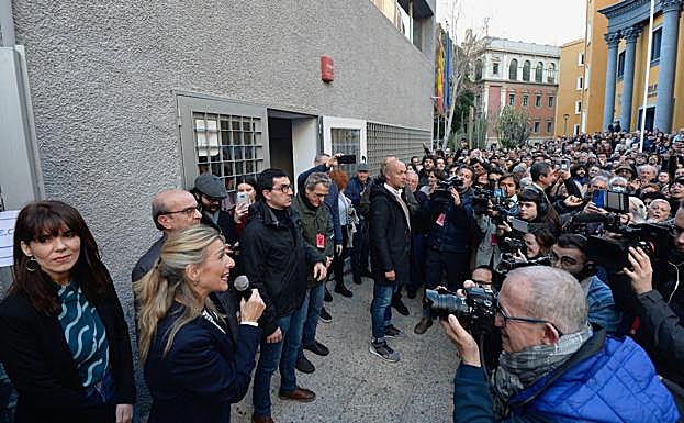 La vicepresidenta del Gobierno presenta en la Región la plataforma Sumar, «que será la gran sorpresa de 2023», en un acto al que no pudieron entrar mil personas por falta de espacio