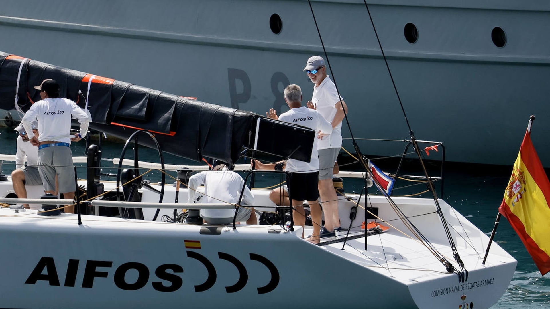 En la base, don Felipe fue recibido por el patrón del ‘Aifos’, el almirante Jaime Rodríguez Toubes, delegado de la Comisión de Vela de la Armada. Después de subir a la cubierta de la embarcación, el Rey saludó a los integrantes de la tripulación, todos miembros de la Marina.