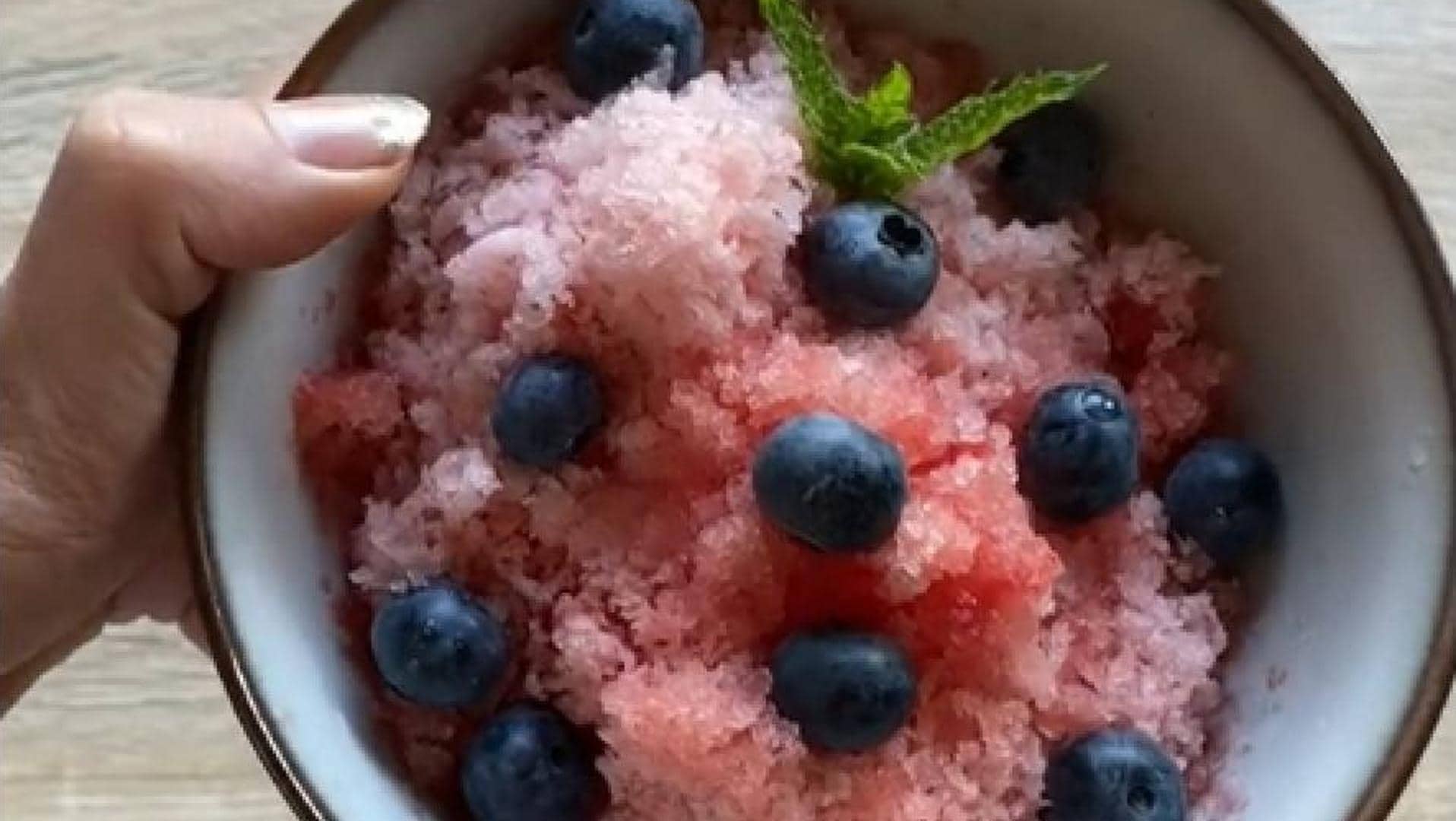 Para ello, tan solo hay que congelar la pieza con la que se quiera elaborar el postre. En el caso de la sandía, se cortan un par de porciones y se meten en el congelador durante 12 horas aproximadamente. Posteriormente, se raspan con un rallador, se agregan unas gotas de limón y se decora el bol con unos arándanos. Sin duda, una alternativa saludable para este verano que se puede realizar con múltiples combinaciones.