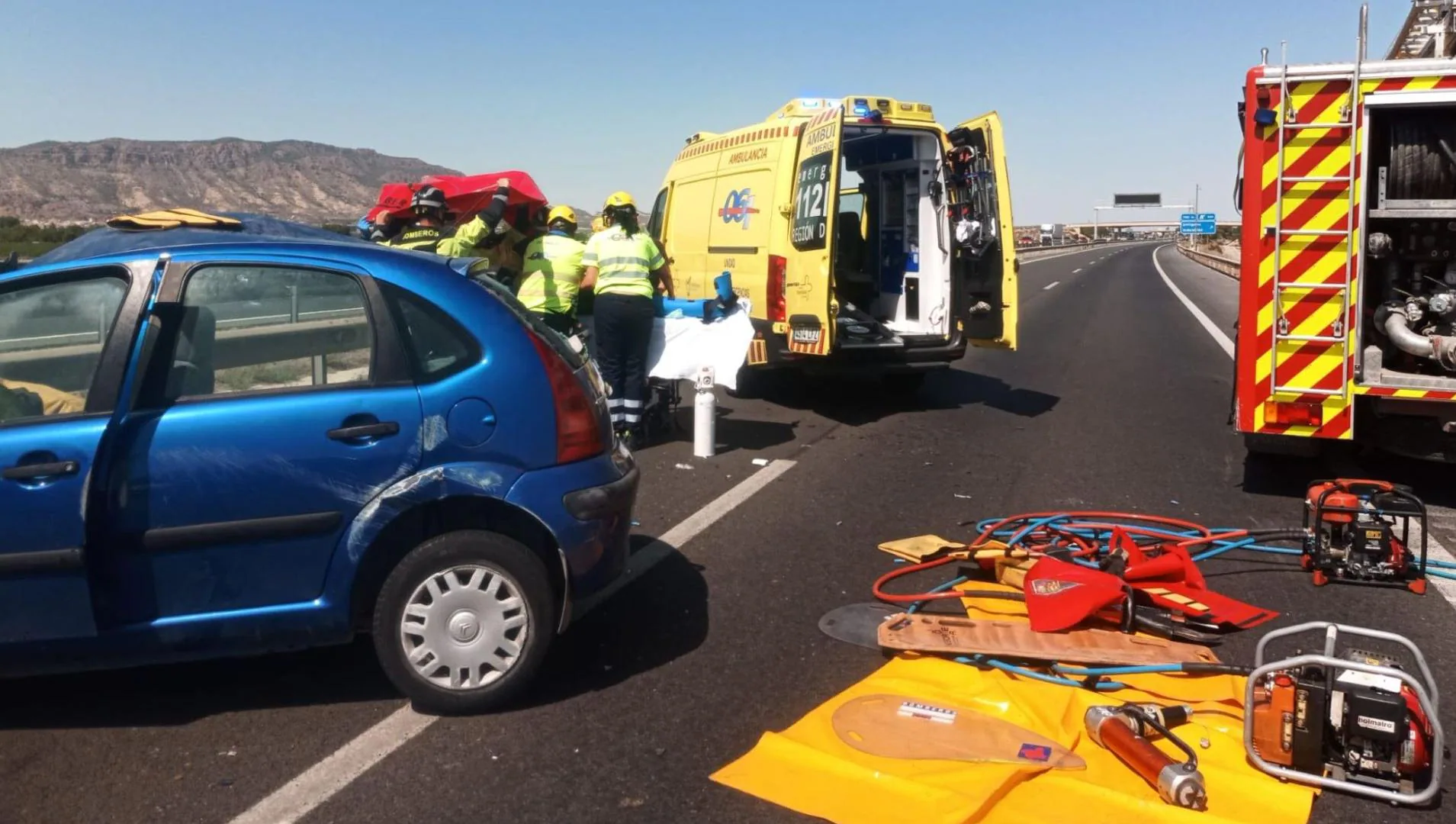 El primero ocurrió sobre las 15.30 horas, cuando el 112 recibió una veintena de llamadas alertando de una colisión en sentido Murcia entre una furgoneta y un turismo, en el que permanecía atrapado uno de los ocupantes. El resto pudo salir por sus propios medios de los vehículos, que obstaculizaban la circulación del resto.