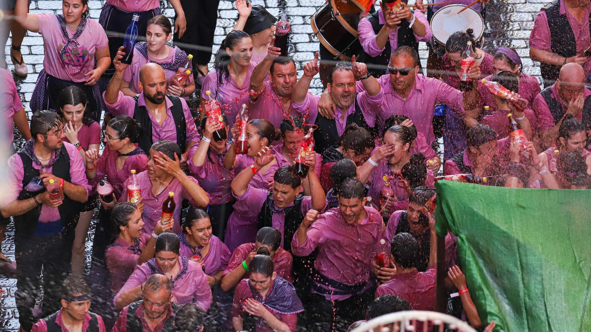 A lo largo del recorrido, los peñistas repartieron el vino y la sangría, además de regar con el preciado líquido a todos cuantos llenaban las calles. Y lo hicieron con todo tipo de artilugios, como botellas, pistolas de agua y mangueras, botas de vino y jarras, entre otros.