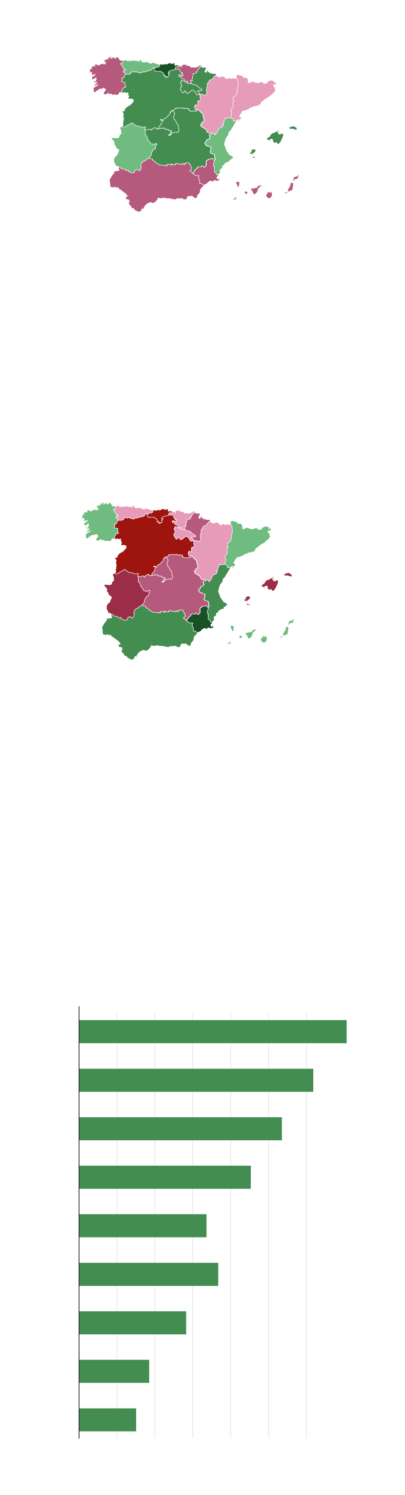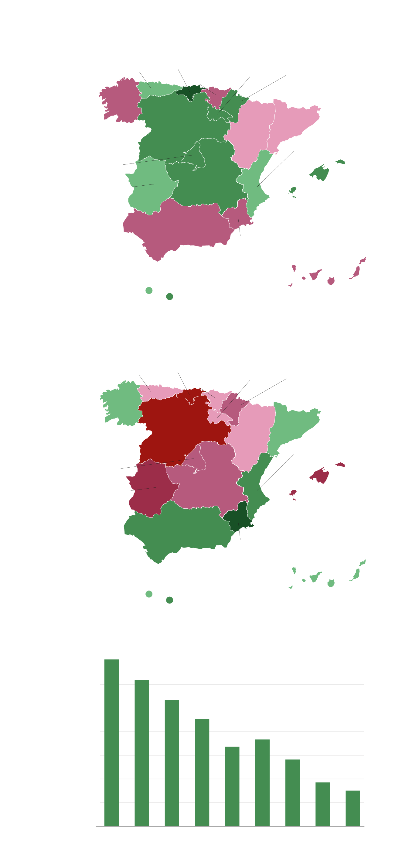 El dato autonómico contrasta con el que ofrece el INE para el conjunto de España, donde ha habido un 0,4% más de alumbramientos en 2024, algo que no ocurría desde 2014, hace justo una década. Solo Galicia (-4.4), País Vasco (-3,7) y Canarias (-2,3) presentaron caídas porcentuales más elevadas en los nacimientos que la Región. Las comunidades autónomas con mayores crecimientos fueron Cantabria (13,3%), Baleares (5,7), Castilla y León (5) y Comunidad de Madrid (4,7).
