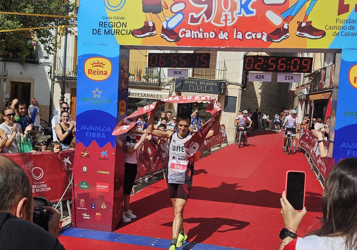 Agüera, uno de los mejores atletas de ultrafondo de la Región, completó los 90 kilómetros del recorrido a 4 minutos y 33 segundos el kilómetro y llegó a la meta ubicada en la plaza del Arco ce Caravaca con una ventaja sideral de 37 minutos y 29 segundos sobre el segundo clasificado, que fue Raúl Peñalver, del Comemillas (7:32:46). El tercero fue José Manuel Martínez, con un tiempo de 7:39:06.