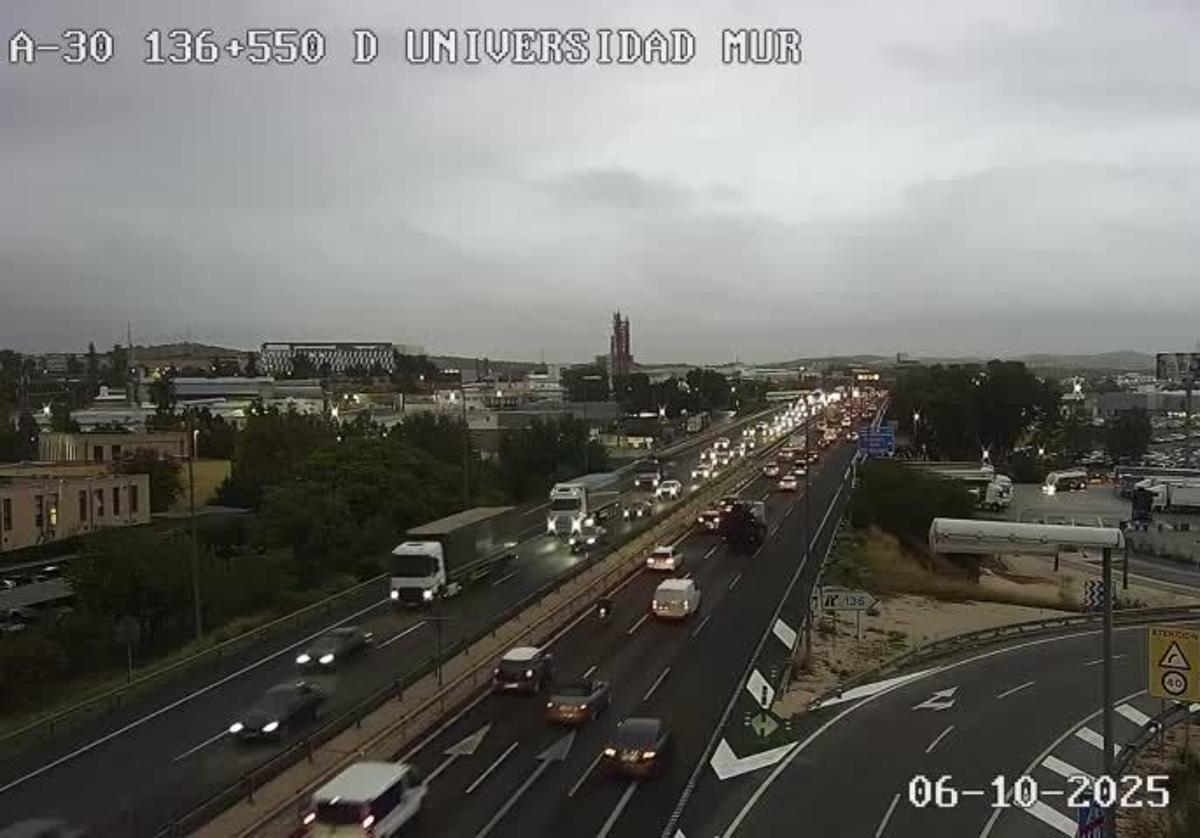La semana ha empezado este lunes con algunas lluvias durante la madrugada y con grandes retenciones. El punto más delicado se encuentra en la autovía A-30 a la altura de Murcia con atascos que van desde el kilómetro 145 hasta el 135 en sentido Albacete. Además, en la misma vía, pero en sentido Cartagena, las retenciones van desde el kilómetro 139 hasta el 146. También en la autovía A-30, a la altura de Molina de Segura, el atasco se extiende entre los kilómetros 128 y 131.