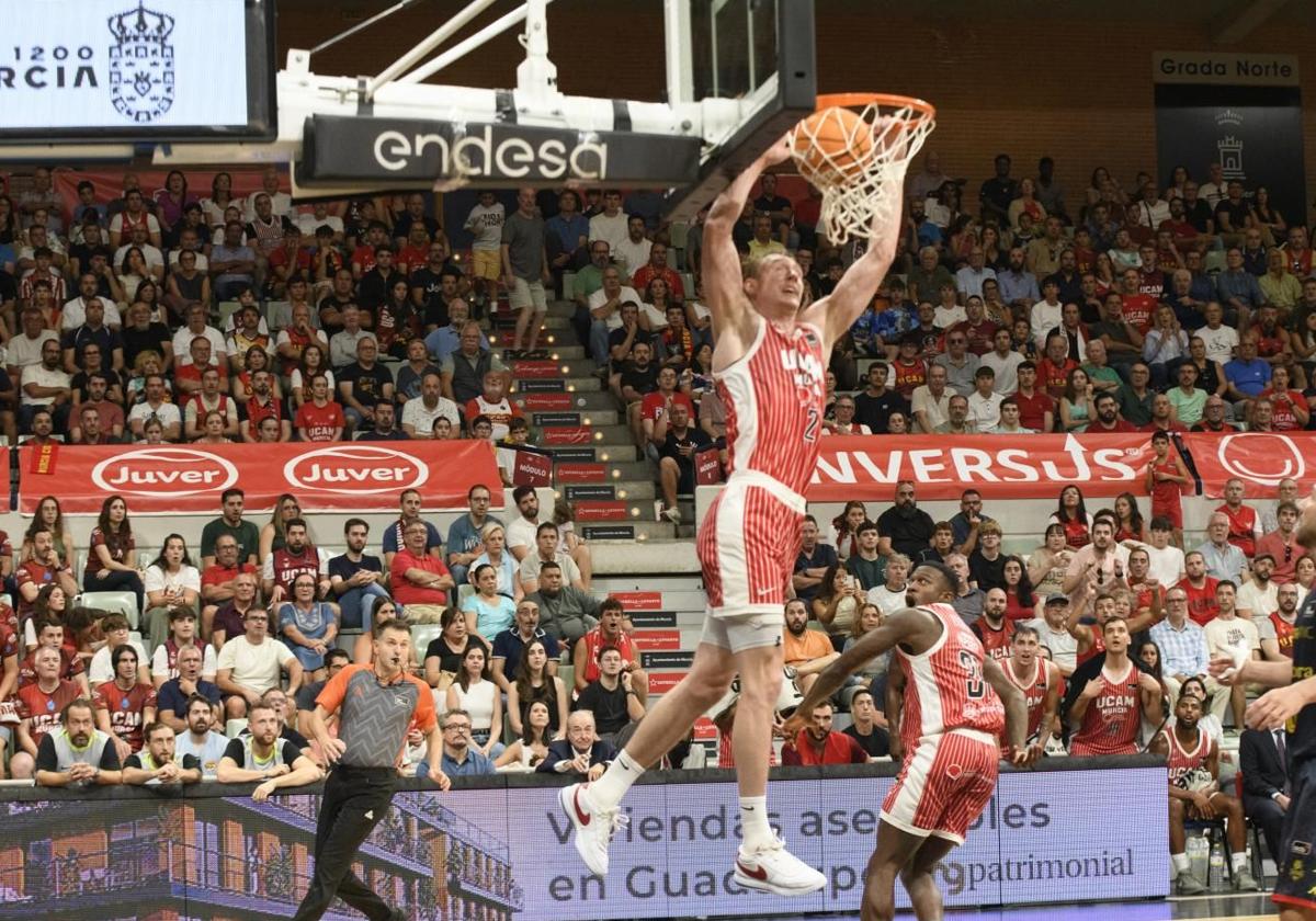 Hasta entonces, un UCAM que, salvo en el primer cuarto, fue la mayor parte de un incómodo partido por delante, estaba aprendiendo a ganar a la vez que sufría. Sus triunfos hasta la fecha, incluida pretemporada, previa de Champions League y primera jornada, habían sido ejecutados con la placidez de quien impone su ley. Hoy no siempre fue así, pues más de una vez tuvo que tirarse de los pelos Sito Alonso de ver al rival logrando tiros a los pocos segundos de posesión, algo de lo que advirtió en el prepartido, así como de lamentar en la primera parte los numerosos fallos en el triple, uno detrás de otro hasta que, a la decimosexta, llegó la vencida.