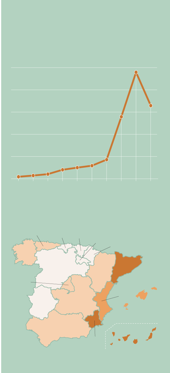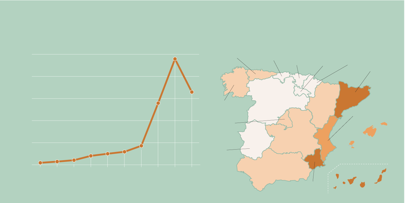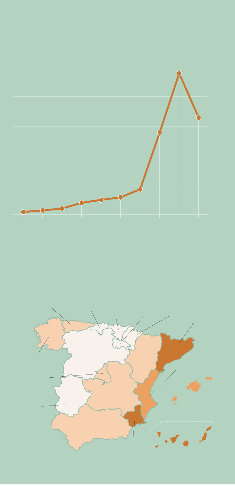 La otra cara de la moneda son autonomías como País Vasco o Navarra, con las ratios más bajas del país -17,6 y 22,7, respectivamente-. Más de 18.000 personas en todo el país se declararon en el segundo trimestre del año en esta situación, que trata de buscar una salida para hacer frente a sus deudas. No en vano, la Justicia ya concede, cada día, en la Región una media de cinco exoneraciones de deuda a ciudadanos o familias acorraladas por su débito. Esta figura, incluida en la Ley de Segunda Oportunidad y directamente ligada a las quiebras, ha ido creciendo exponencialmente desde que vio la luz en 2015 y el año pasado ya dejó una cifra de hasta 2.083 condonaciones de deuda en la Comunidad.