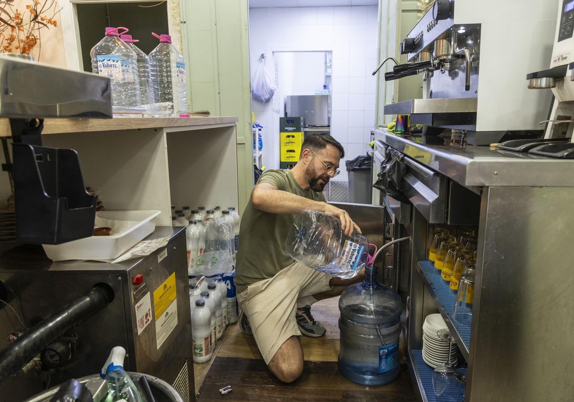 «Yo no me bebo un café en vaso de cartón», le contestó ayer una clienta a Adrián Palazón, dueño de la cafetería Atelier, en … plena avenida Sandoval de Santiago de la Ribera. «En cuanto vio el vaso, se levantó y se fue», cuenta el hostelero, que ha visto desde el pasado domingo –primer día con agua no potable en la comarca del Mar Menor– multiplicarse la clientela y el estrés. La crisis del grifo, con dos días de corte de suministro incluidos, ha llevado a numerosos comerciantes a echar el cierre hasta que el agua se aclare. Tras una nueva ola de barro, no a todos les han quedado ganas de asumir las nuevas complicaciones. Se quejan de la falta de un protocolo de actuación ante la crisis. Se han visto solos ante el nuevo riesgo de salud pública.