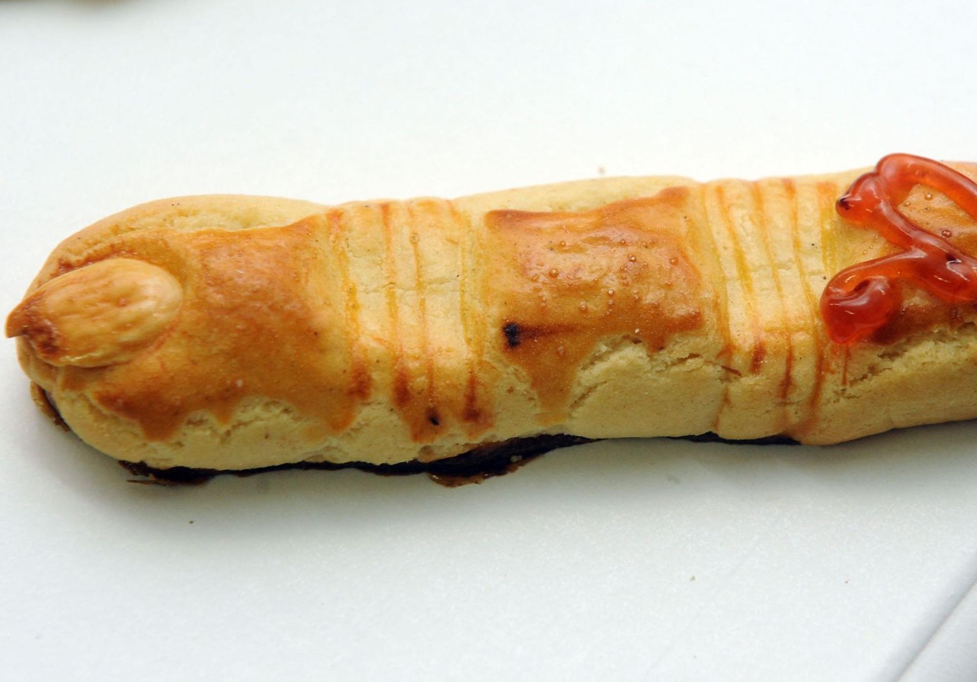Cuando se enfríen podemos decorar con mermelada de fresa a modo de sangre para que parezca que son dedos recién cortados.