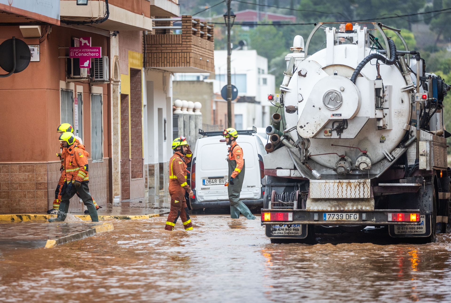 Primeras actuaciones de bomberos y UME en las pedanías de Valencia afectadas.