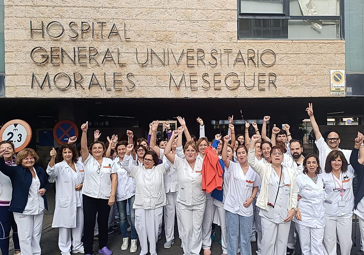 Los técnicos sanitarios superiores del Servicio Murciano de Salud (SMS) se manifestaron este jueves antel el hospital Morales Meseguer de Murcia en protesta por el borrador del Estatuto marco que plantea el Ministerio de Sanidad.