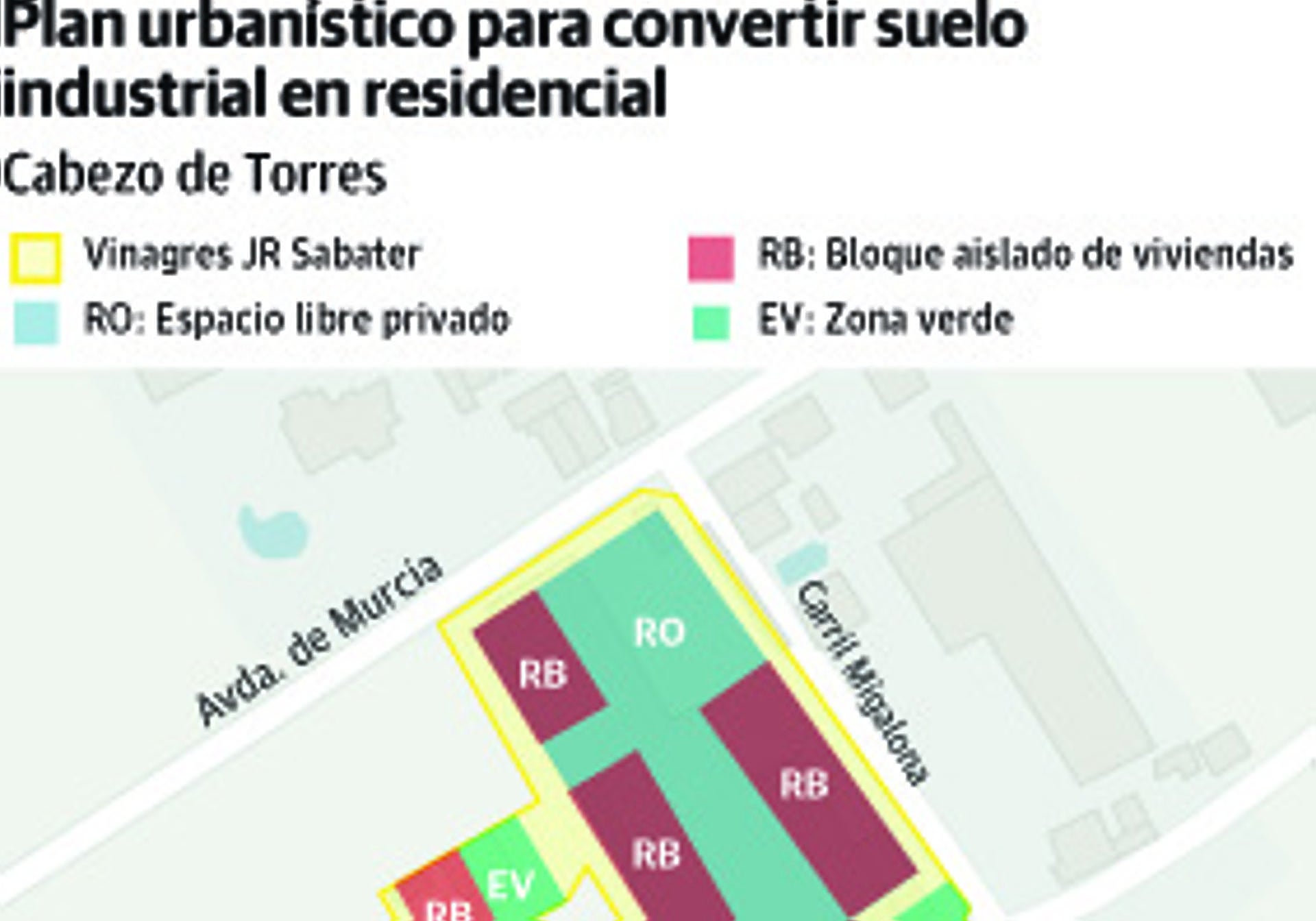 Casi medio siglo lleva J.R. Sabater elaborando vinagres en plena huerta de Murcia. Sin embargo, esta empresa familiar abandonará en los próximos años las … instalaciones con las que cuenta en la pedanía de Cabezo de Torres. Confirma este extremo la tramitación urbanística ya iniciada para transformar el suelo industrial en el que se ubica en parcelas de uso residencial. De hecho, el Ayuntamiento de Murcia acaba de aprobar inicialmente el programa de actuación del llamado Plan Especial de Reforma Interior Churra 1, lo que constituye el primer paso para construir alrededor de 150 viviendas en un área configurada ya, de facto, como de expansión de la ciudad.