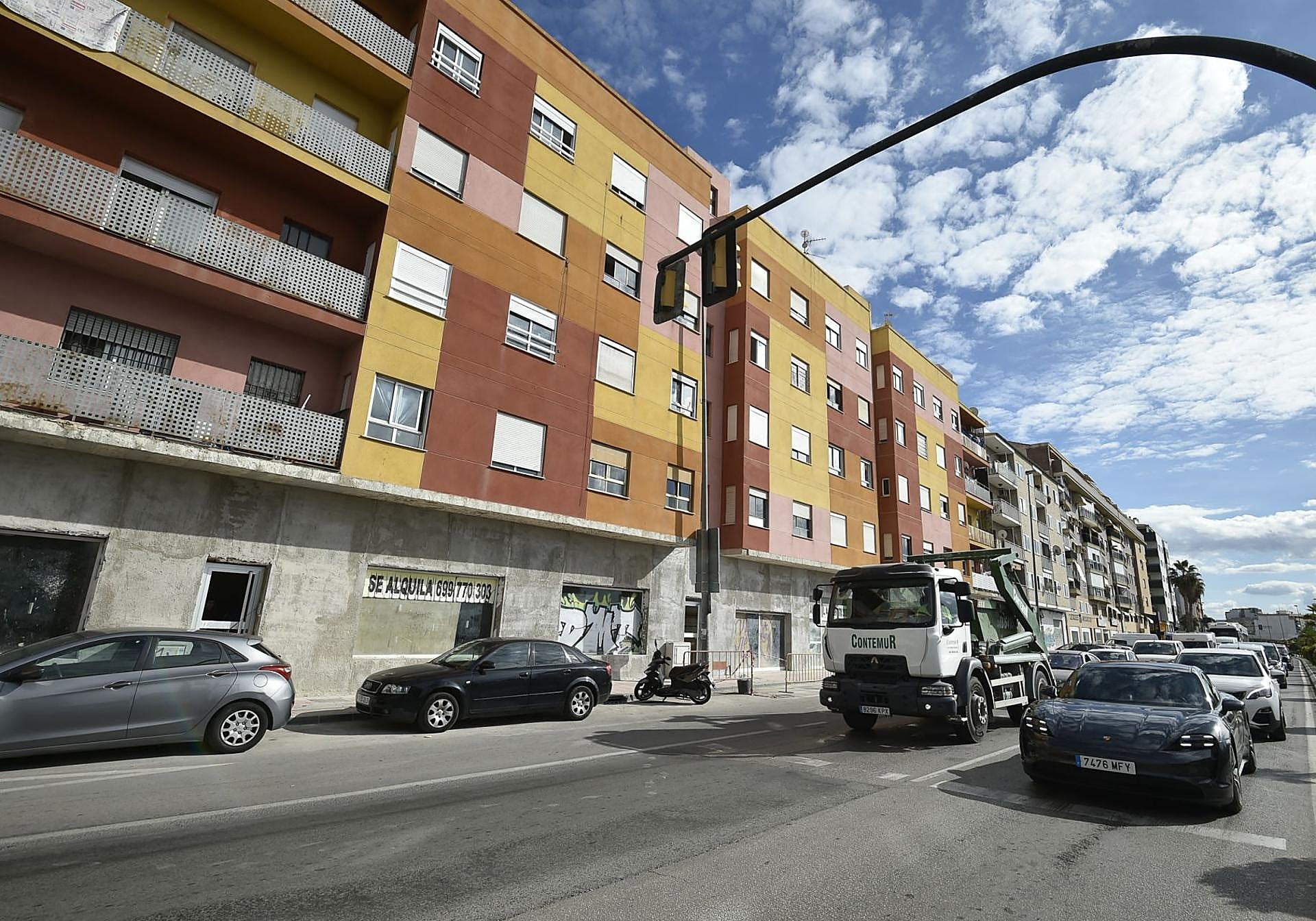 Vista de los bloques de pisos y de los bajos, en la avenida de la Industria.