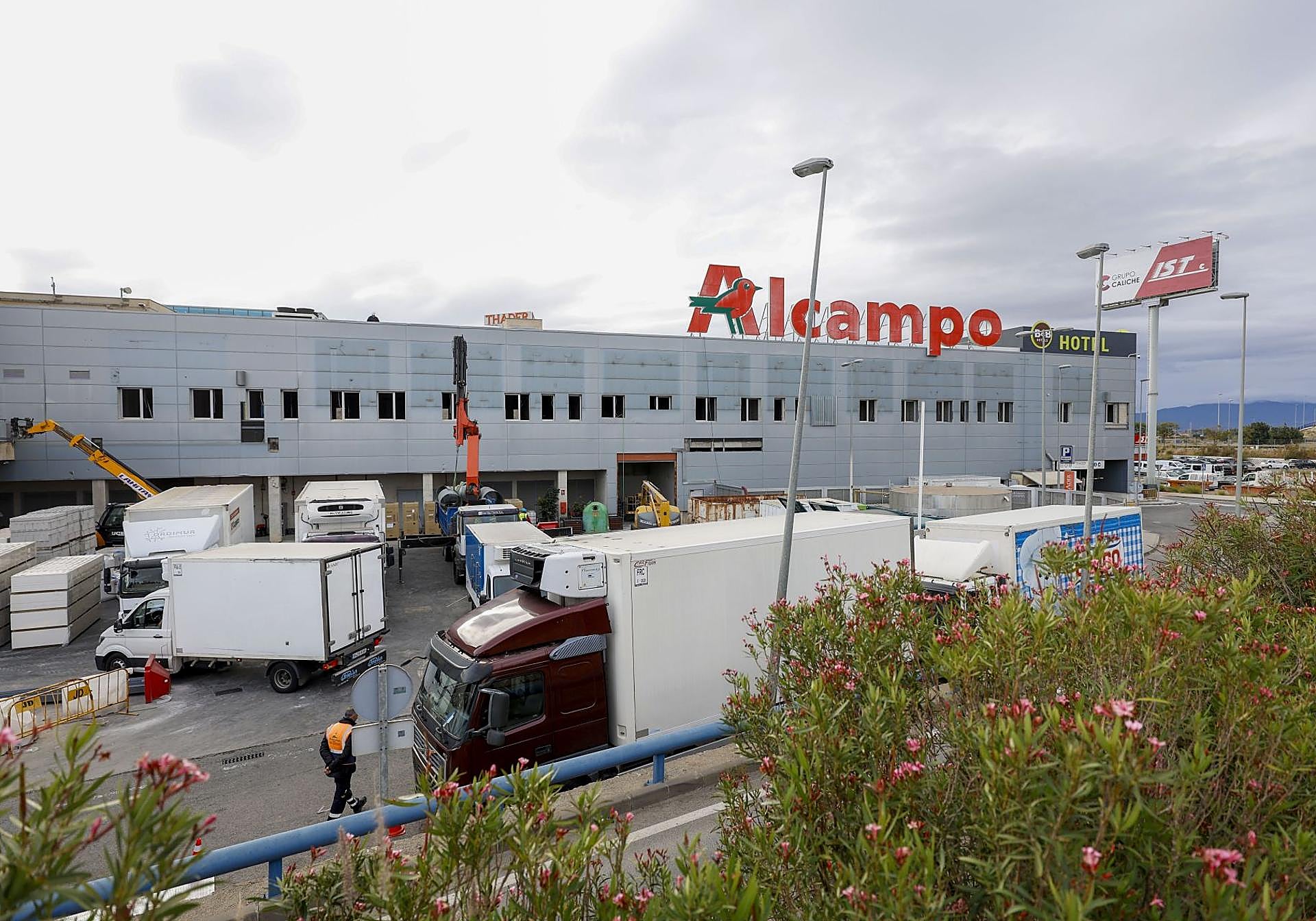 Obras de un nuevo hotel en el centro comercial Thader, con el establecimiento ya existente al fondo.