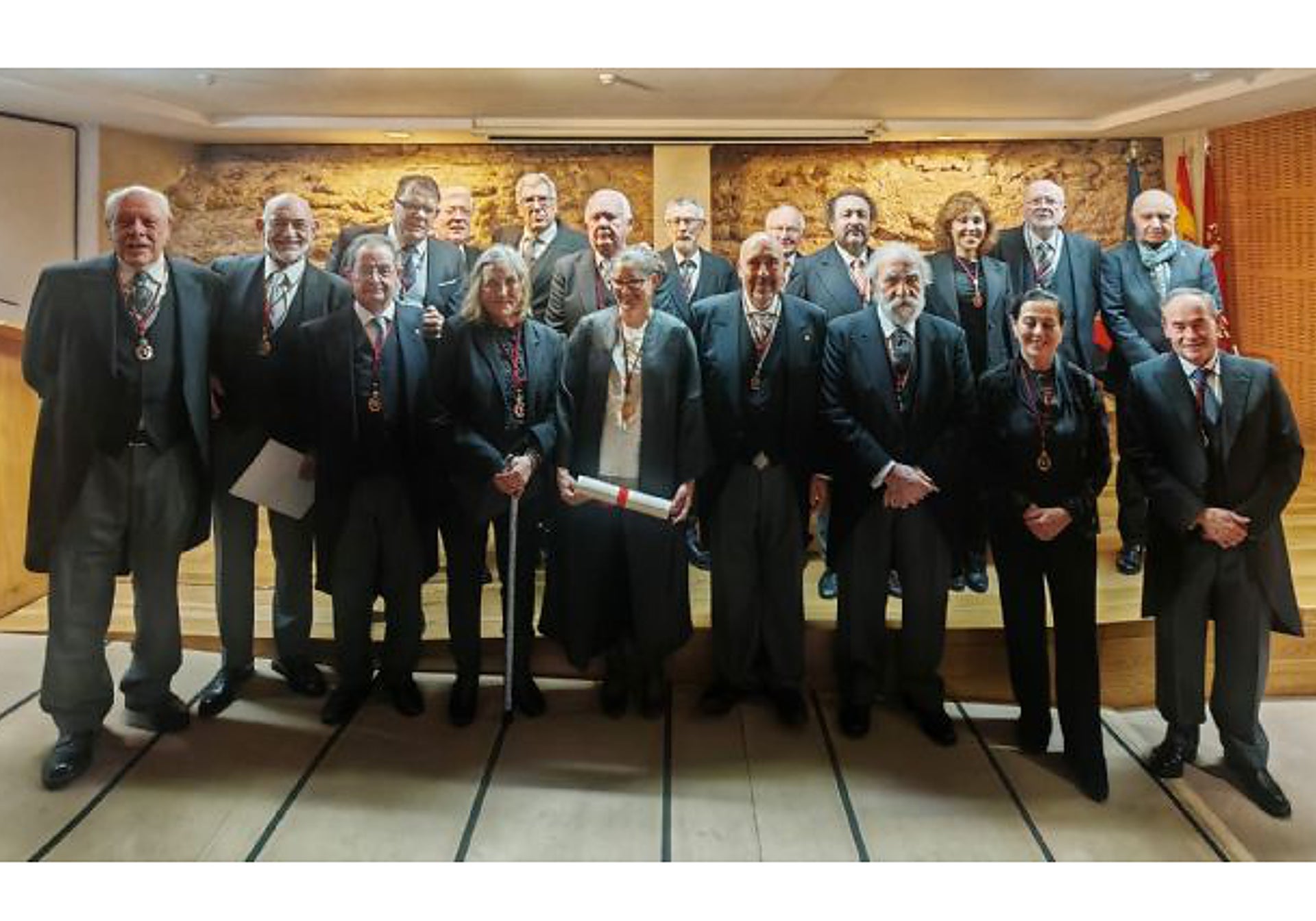 Patricia Reus, en primera fila, en el centro, junto al resto de miembros de la Real Academia de Bellas Artes Santa María de la Arrixaca de Murcia.