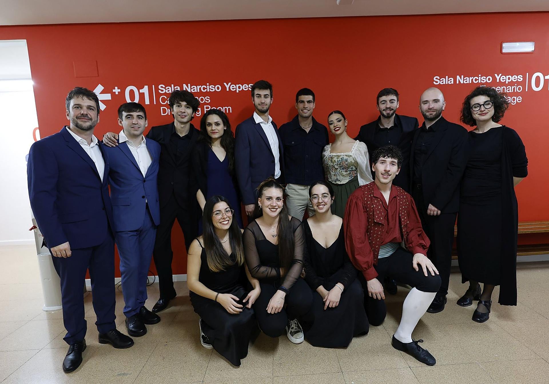Jorge Losana junto a sus compañeros de Cantoría, los miembros de la Orquesta Barroca de la Universidad de Murcia y la pareja de bailarines que actuaron en diferentes momentos de la gala.
