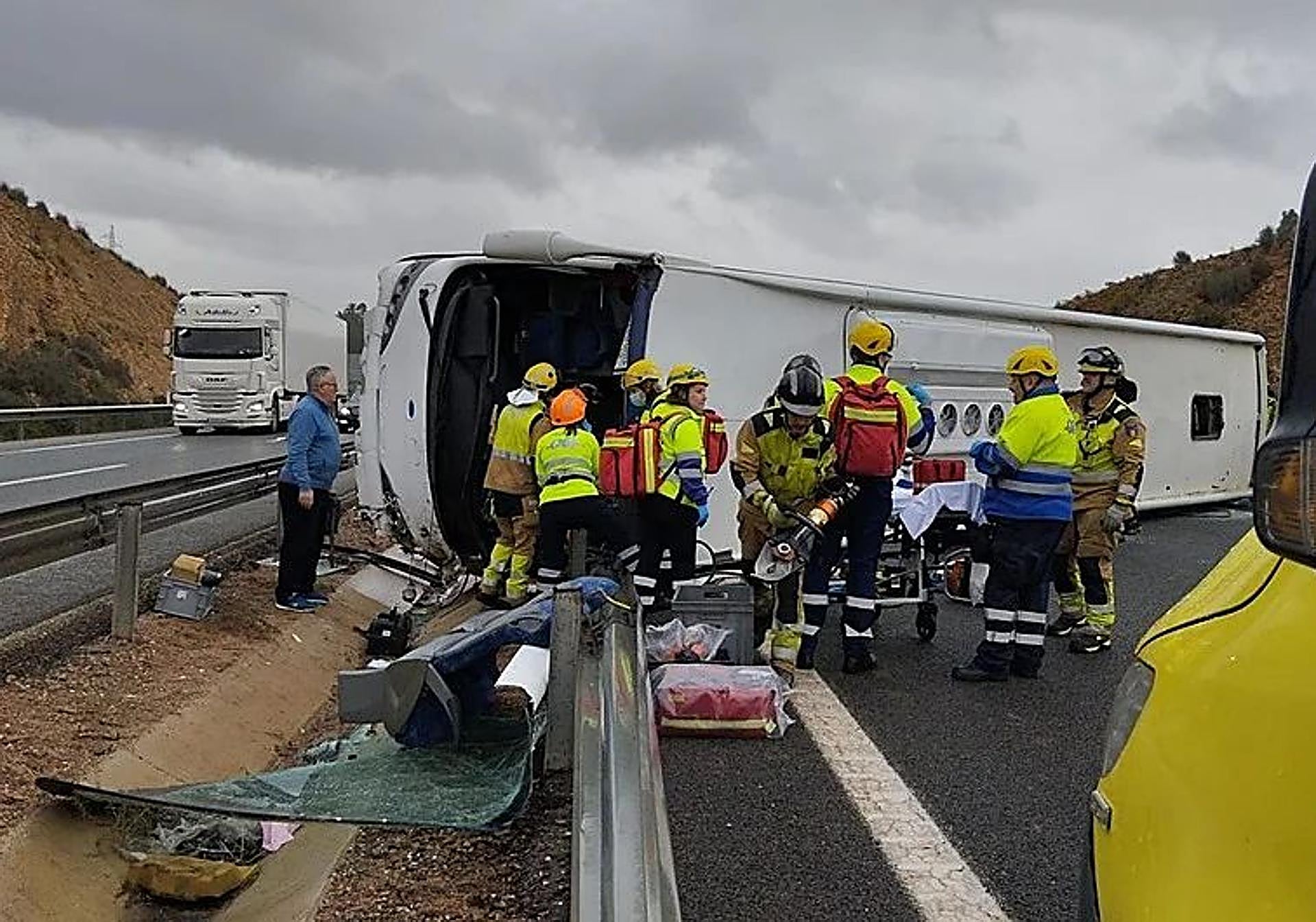 Una veintena de heridos en el aparatoso vuelco de un autobús en la autovía A-7
