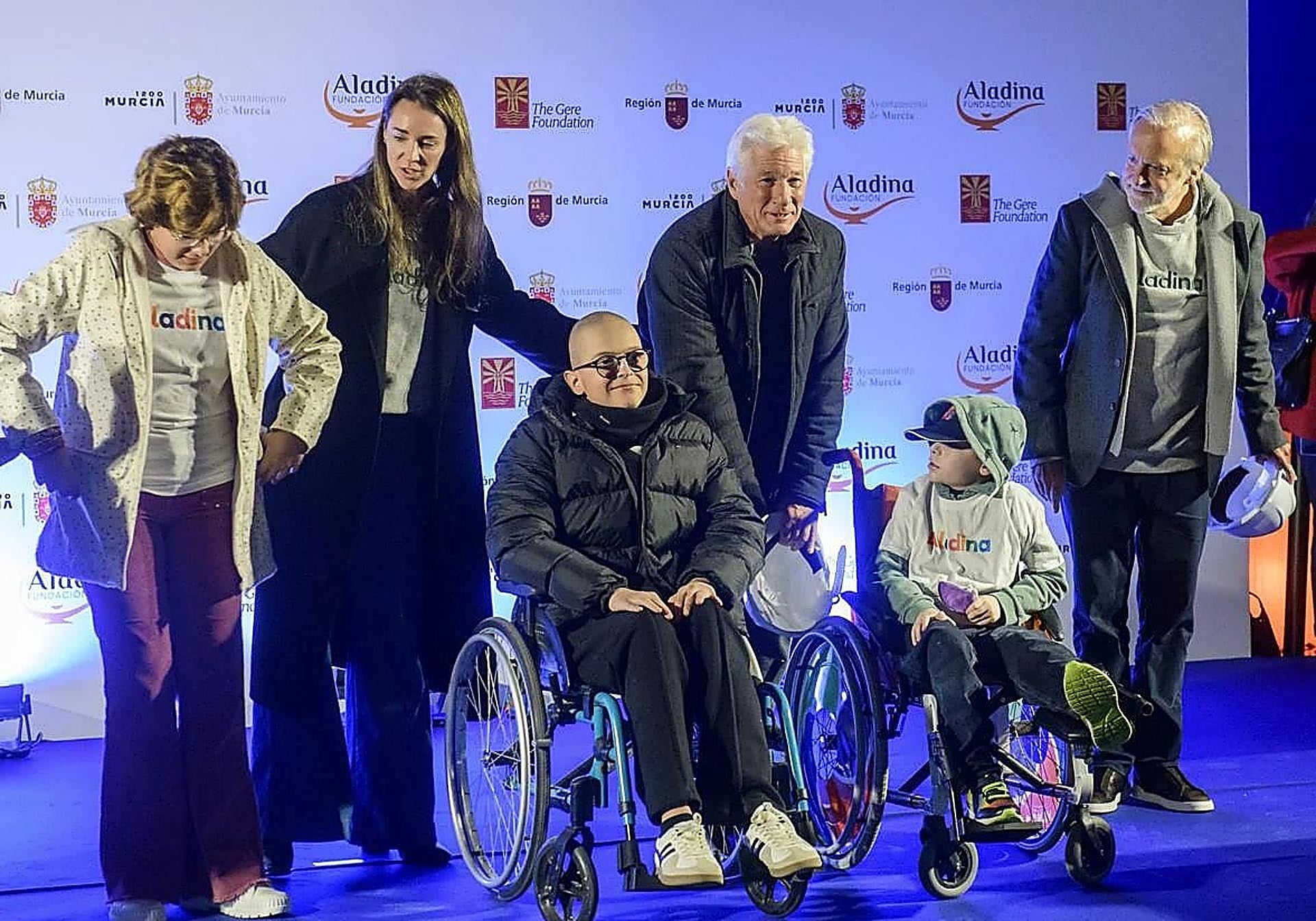 Richard Gere, al centro, junto a pacientes oncológicos infantiles de La Arrixaca.