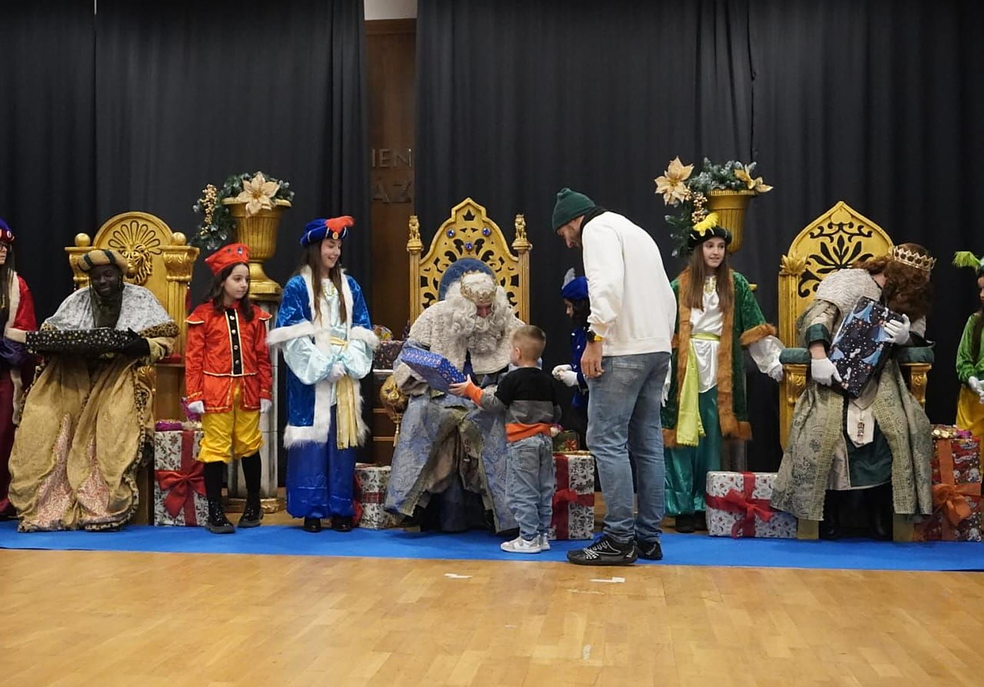 El Rey Melchor entrega un regalo a un niño en Los Alcázares.