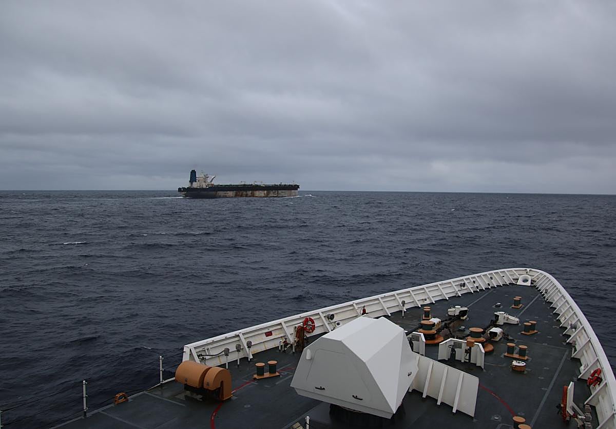El 17 de diciembre comunicó su posición: en el Atlántico, rumbo al mar Caribe. Sin embargo, se topó con la Armada estadounidense, desplegada bajo órdenes de Donald Trump para hacer cumplir el embargo petrolero. La Guardia Costera intentó interceptarlo el 20 de diciembre, pero el buque repelió con éxito el ataque. Unos días después, fue localizado rumbo al norte, rumbo al Atlántico.