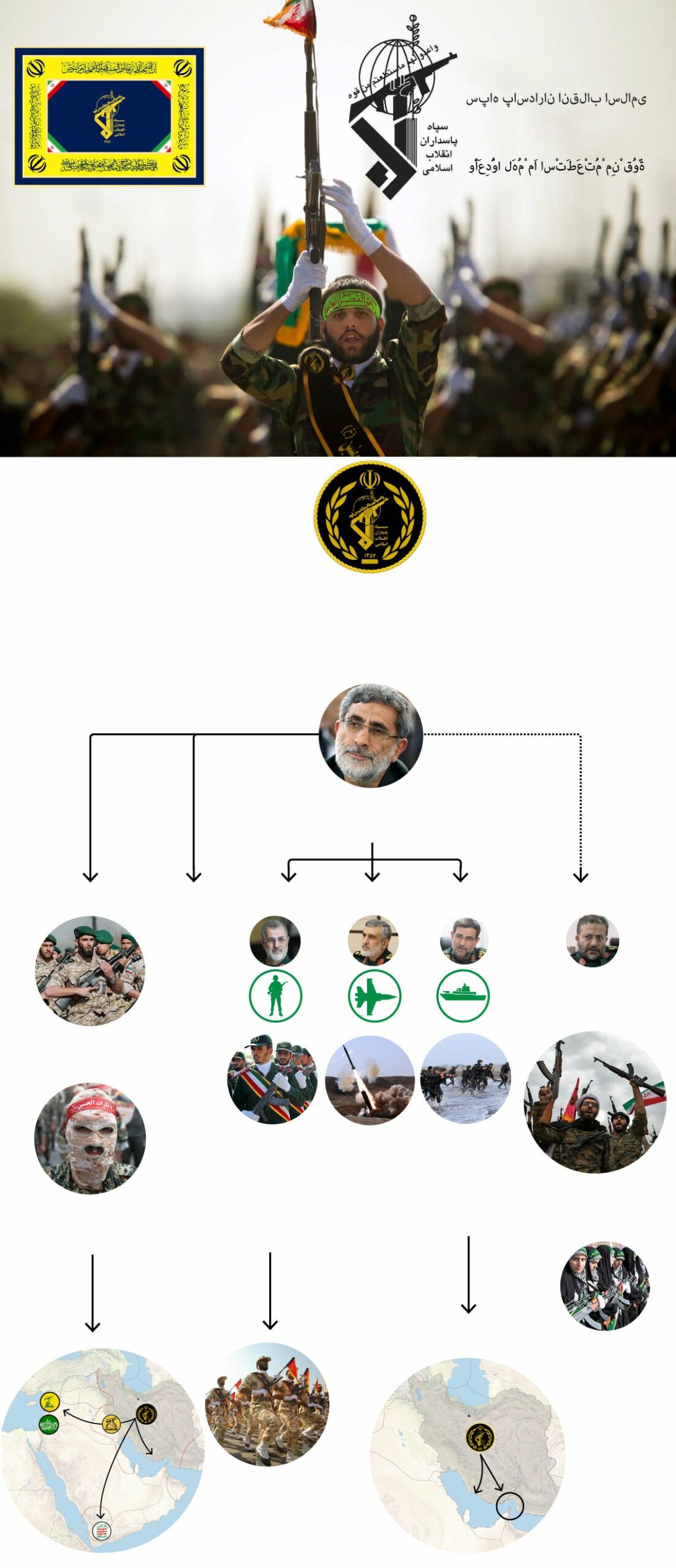 Dentro de la Guardia Revolucionaria existe la denominada ‘Fuerza Quds’, una división con alrededor de 10.000 miembros. Es una especie grupo dedicado a llevar las guerras de Irán contra el mundo occidental a otros países. Su especialidad en asesinatos, sabotajes y tácticas de guerrilleros ha hecho que países como Estados Unidos consideren que la ‘Fuerza Quds’ es un grupo terrorista. Después de todo, esta unidad iraní sí que apoya a otros grupos terroristas implantados en países próximos. La actuación de Hezbolá, en el Líbano; Hamás, en Palestina, los grupos sirios que se enfrentaron a los rebeldes, o los hutíes, en Yemen, entre otros, eran algunos de los destinatarios de la ayuda de la ‘Fuerza Quds’, tanto en armas como en entrenamiento. Al Qaeda en Afganistán también ha tenido apoyo de esta rama de los Pasarán.