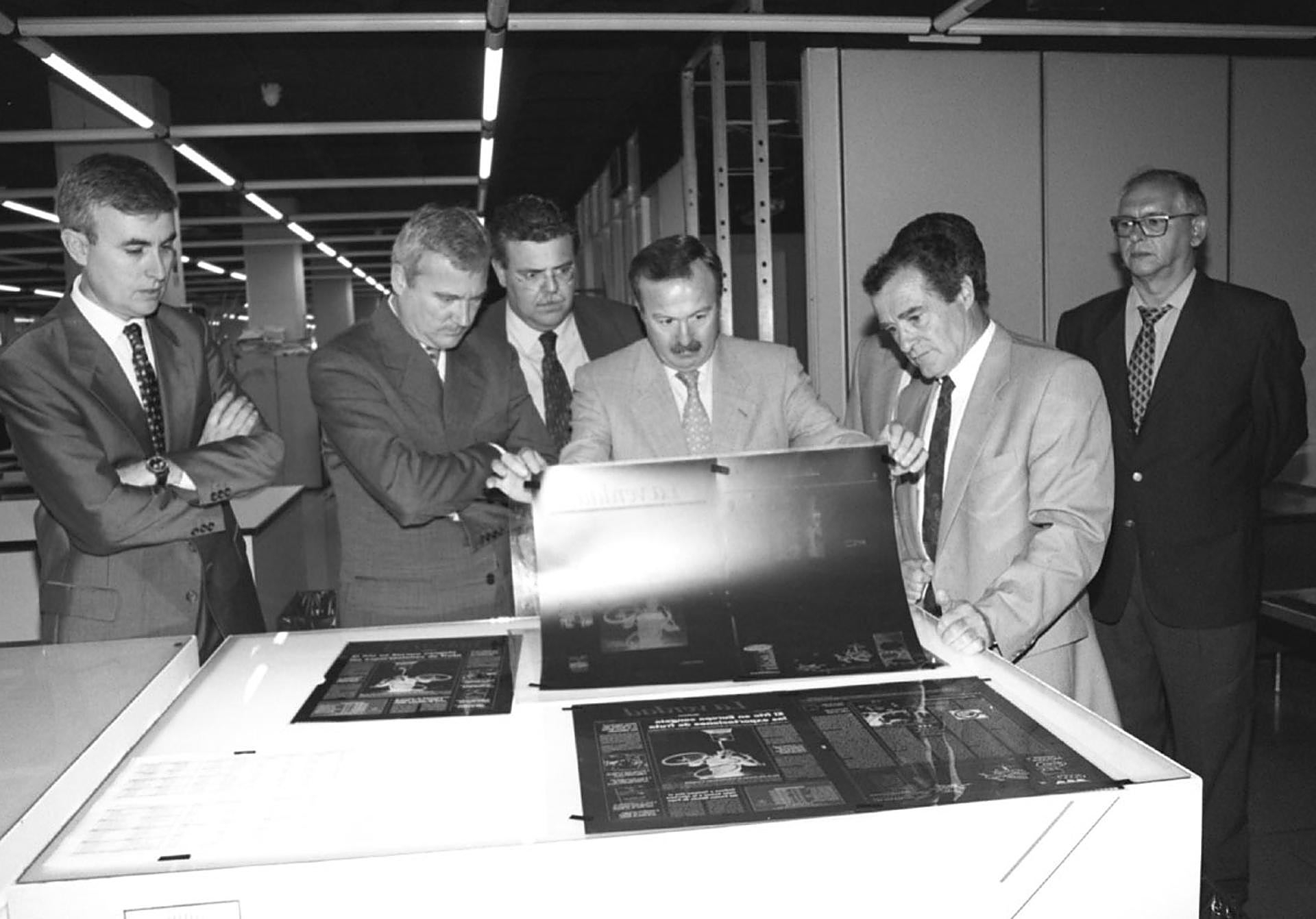 Una visita de Ramón Luis Valcárcel y Antonio Gómez Fayrén a LA VERDAD, con Carreres y Eduardo San Martín.