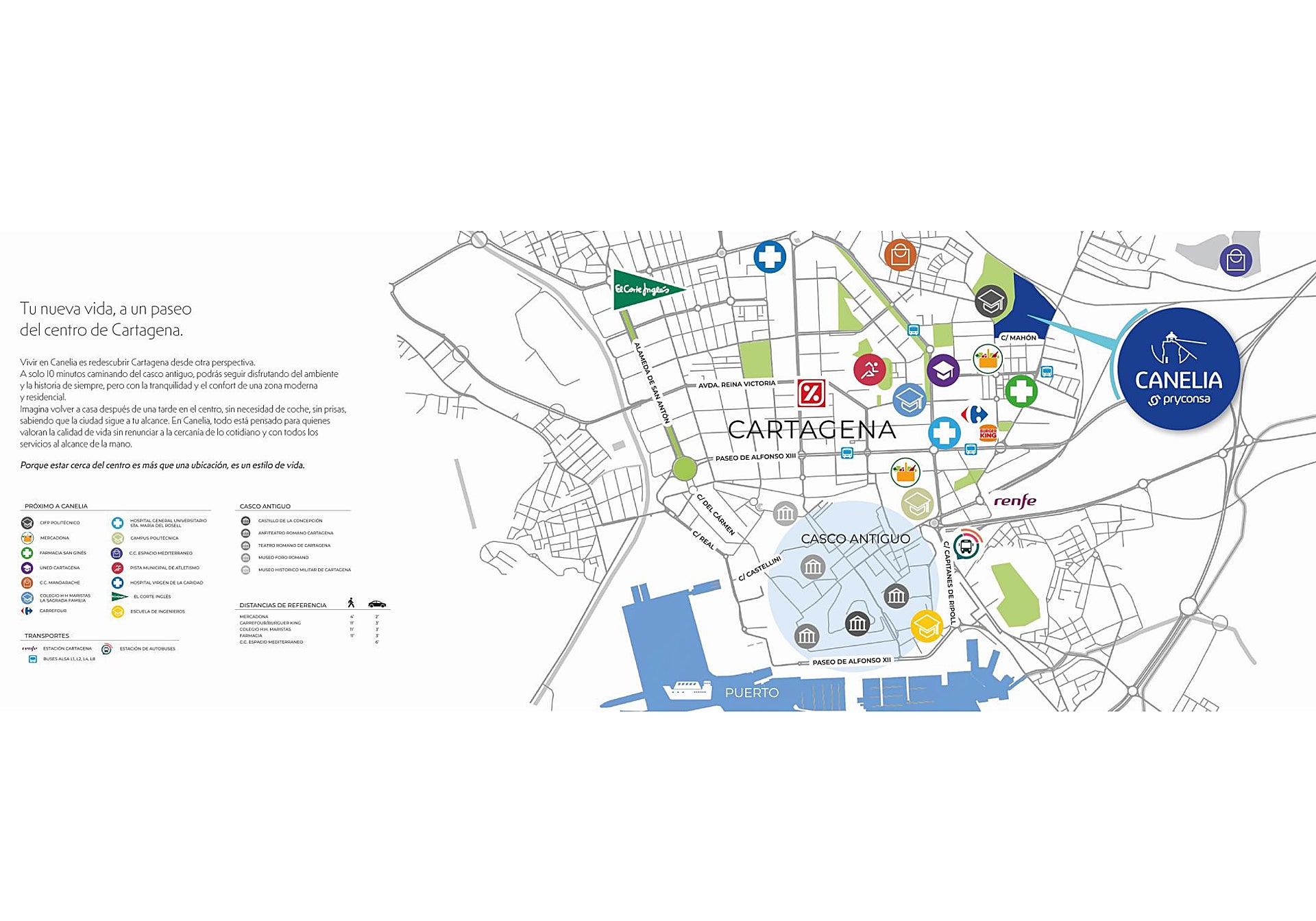 Tras llevar su oferta residencial de pisos y viviendas unifamiliares a la Comunidad de Madrid, Valencia, Bilbao, Valladolid, Sevilla, Cáceres, Málaga, Alicante, Badajoz, Asturias, Palencia y Mallorca, la empresa llega a Cartagena con Canelia, un proyecto llamado a marcar un antes y un después. Promueve un concepto único en la ciudad: una urbanización cerrada con más de 450 viviendas de 1 a 4 dormitorios, a 10 minutos a pie del centro. Sus amplias zonas comunes es uno de sus puntos fuertes, como piscina de adultos e infantil, zona polideportiva exterior, gimnasio equipado, área de juegos infantiles, salas comunitarias, espacio de ‘coworking’ y el Club Canelia Sunset.