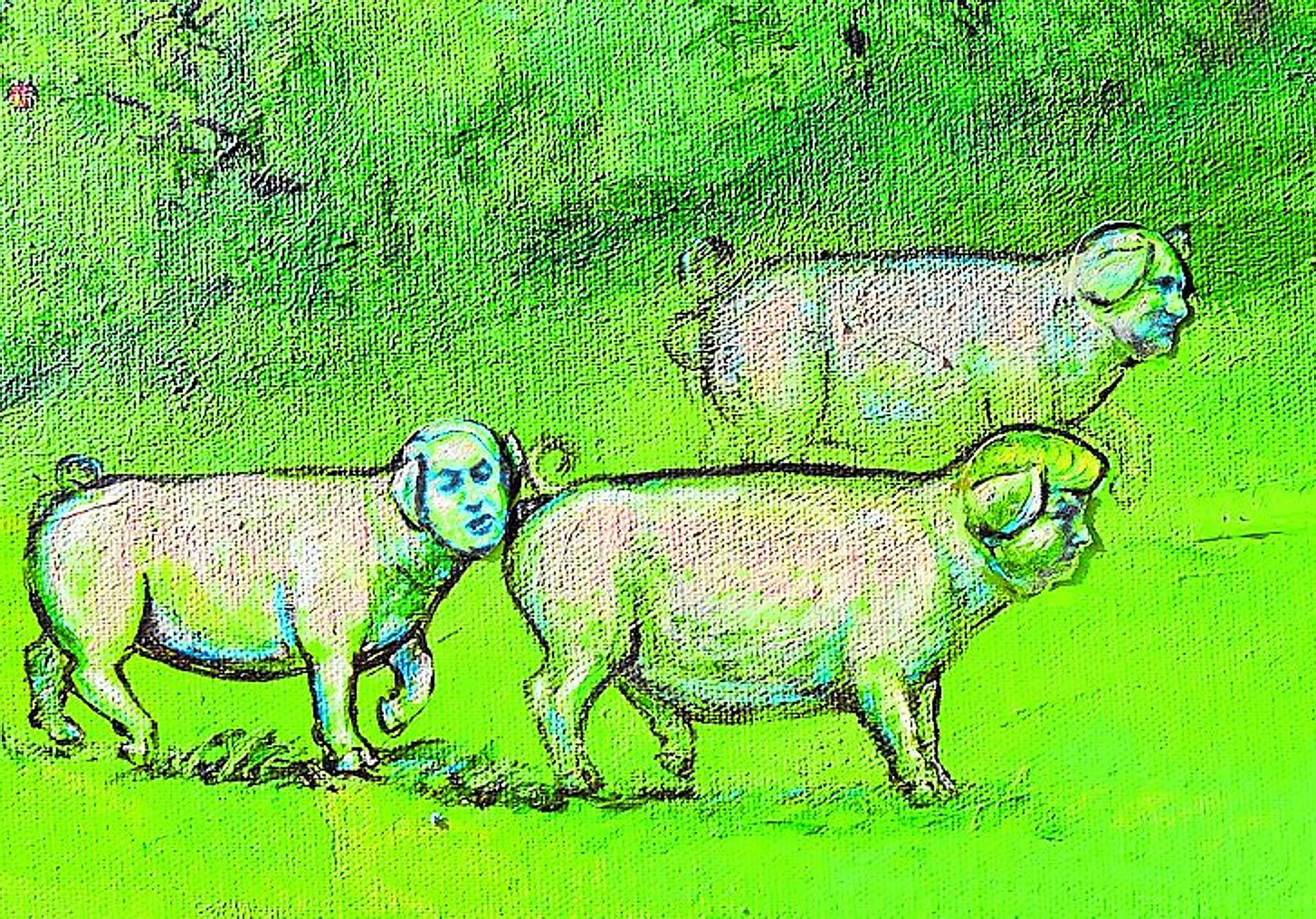 Trump, Putin y Netanyahu retratados como cerdos por Yagües.