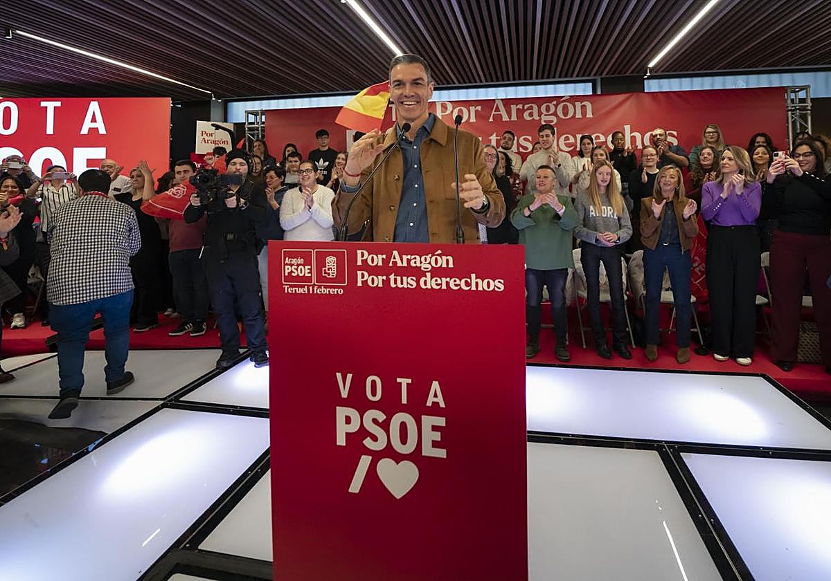 Por segundo domingo consecutivo, y cuando se cumplen dos semanas de la tragedia de Adamuz que ha condicionado el escenario político español en este inicio … de año, Pedro Sánchez ha regresado a Aragón para hacer campaña junto a su exministra y candidata Pilar Alegría, obligada a lidiar con unas previsiones hostiles en las urnas. El presidente y secretario general del PSOE se ha afanado en reanimar a los suyos en Teruel, provincia clave porque es donde menos votos cuesta hacerse con un escaño en las Cortes aragonesas, donde Vox se aferra a su pujanza en el ámbito rural y donde el regionalismo -Teruel Existe- pugna por retener sus actuales tres asientos, que pueden resultar determinantes para que el popular Jorge Azcón retenga la presidencia con pactos alternativos a la extrema derecha. Y lo ha hecho, por añadidura, tras otra semana cuesta arriba para el Gobierno, que vio el martes cómo Junts tumbaba junto a los de Alberto Núñez Feijóo y los de Santiago Abascal el decreto ‘ómnibus’ que incluye el alza de las pensiones -la sacará adelante «sí o sí», ha prometido sin despejar de qué forma- y cómo el jueves rivales y socios exigían al ministro Óscar Puente que dimita por su gestión de la red ferroviaria.