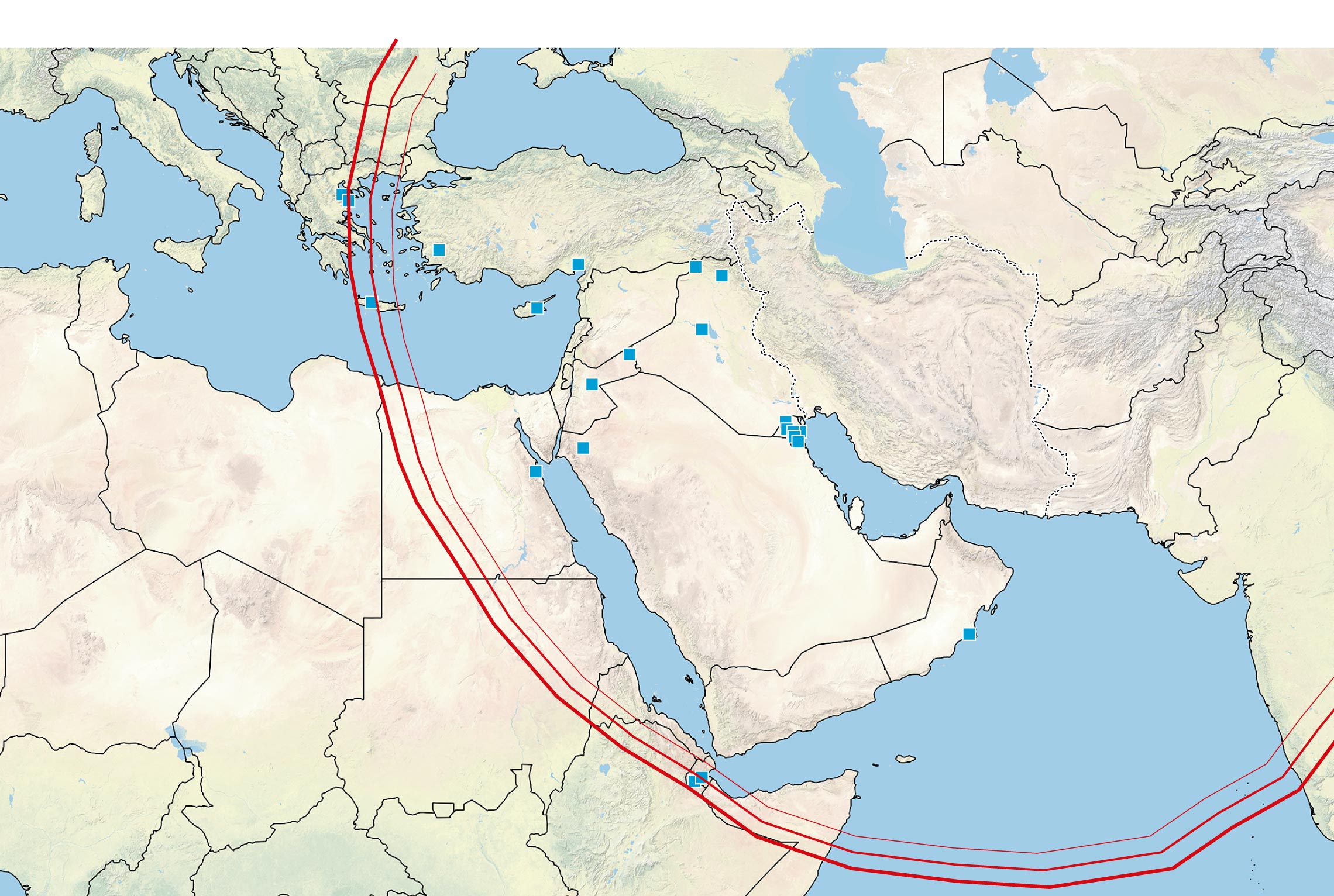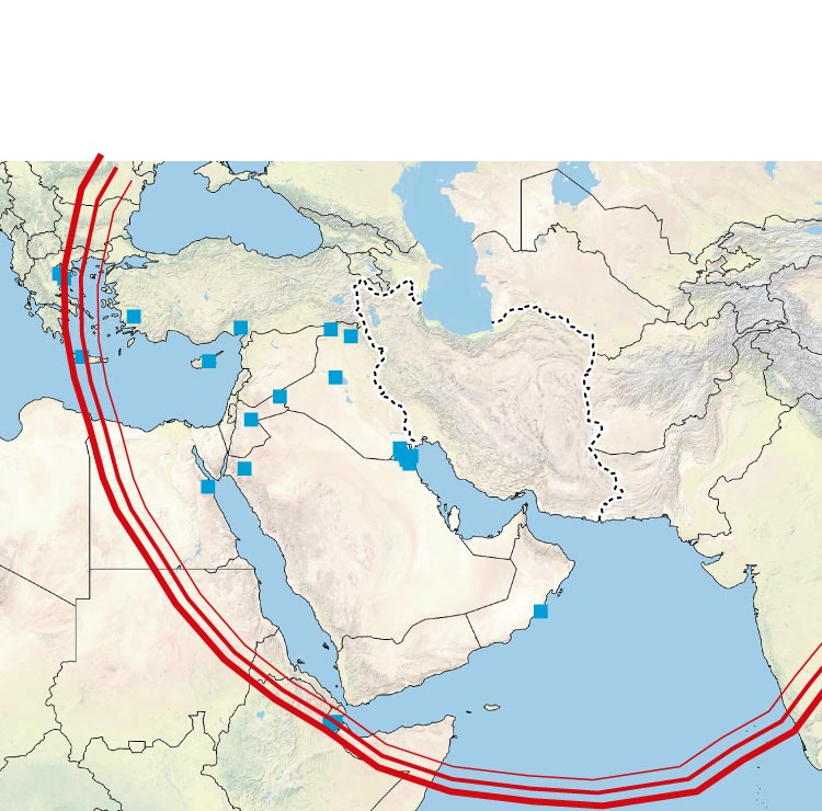 Radio de acción de los misiles balísticos iraníes con mayor alcance (2.000 kms)
