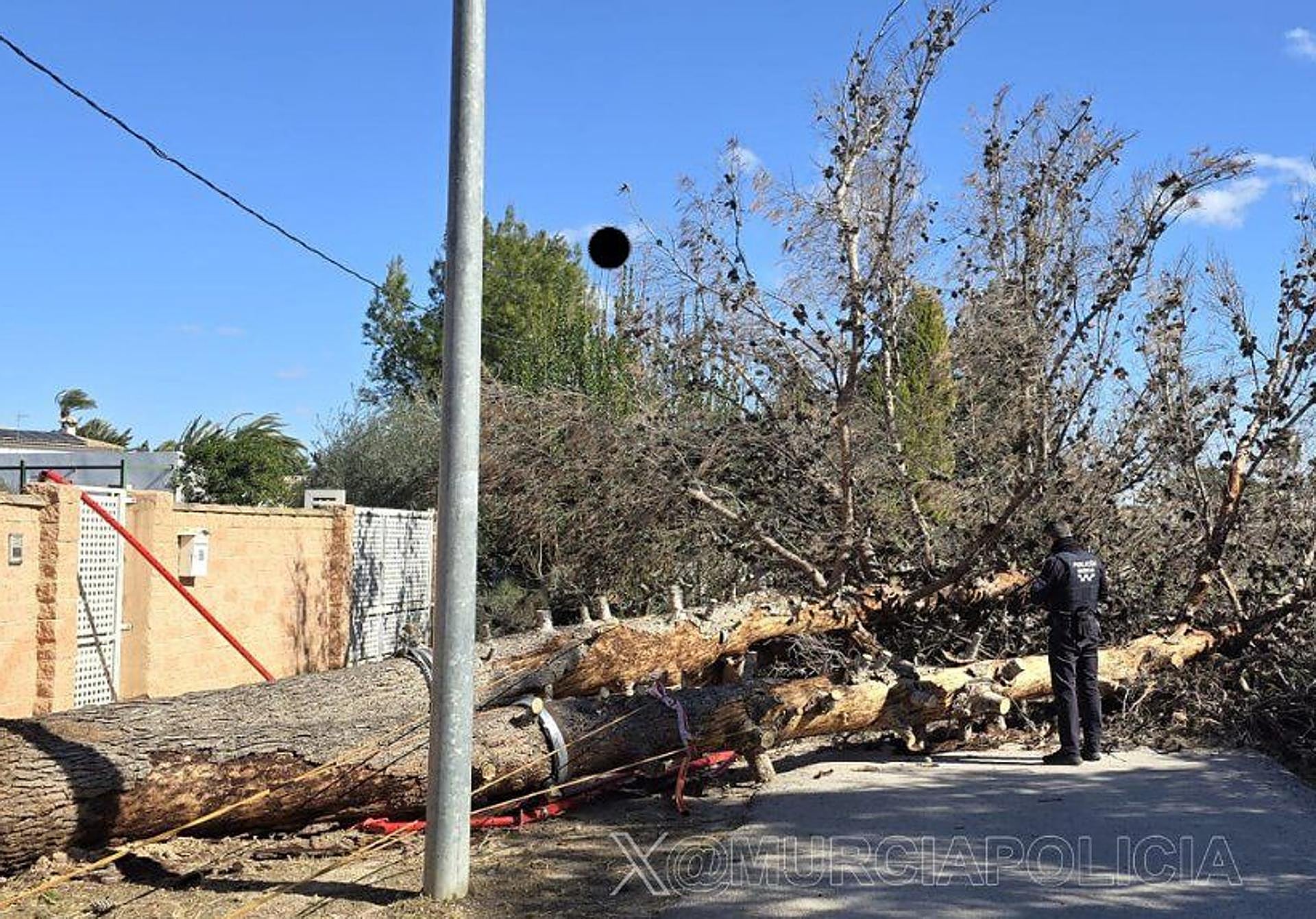 En Rincón de Beniscornia también se produjo la caída de un árbol de grandes dimensiones que, afortunadamente, no ha provocado heridos. En tota, el Ayuntamiento de Murcia ha atendido más de 150 incidentes hasta las 15 horas de este sábado.