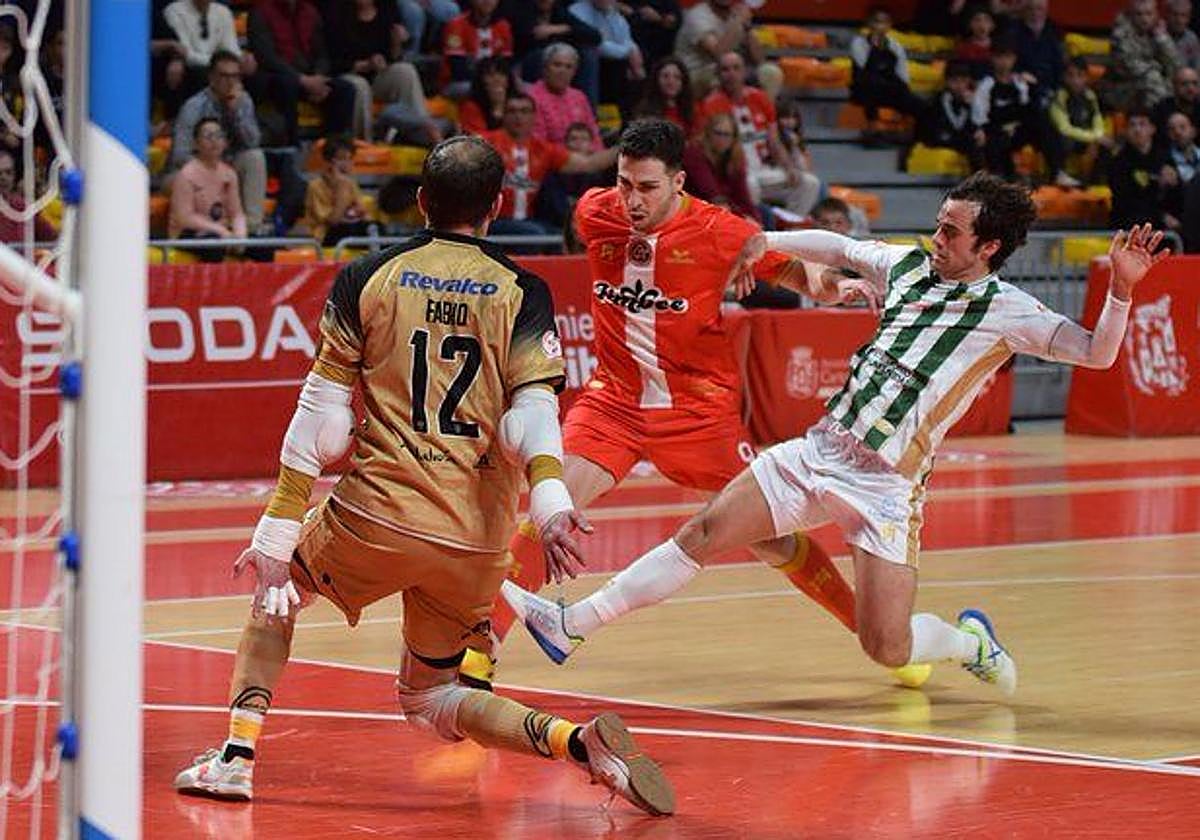 Motta fue el primero en intentarlo. El ítalo-brasileño sacó a pasear la zurda de oro para intimidar la meta defendida por el ex de ElPozo, Fabio. Un par de acciones aisladas en un juego dominado por los meloneros, pero que el cuchillo estaba sin afilar. Demasiada horizontalidad en las combinaciones del Jimbee. Los cordobeses defendían en bloque bajo y eran incapaces de avanzar las líneas cuando tenían el balón, incluso sacando a Víctor Areales, portero suplente, para salir de cinco de manera tímida. Estaba bien plantado el Jimbee sobre el parqué y era cuestión de tiempo que acabase llegando el ansiado gol.