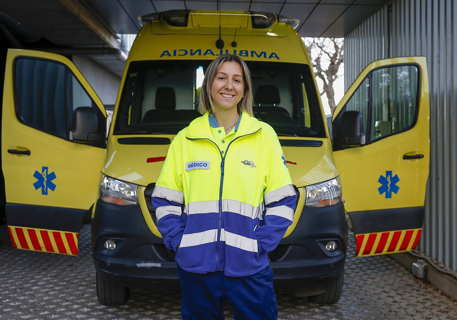 Esther Rodríguez atiende a este periódico después de una larga guardia de 24 horas en la Unidad Medicalizada de Emergencias (UME) de Ronda Sur. Es MIR de tercer año en la especialidad de Medicina de Familia, y ha pedido este destino para completar una de sus rotaciones. «La guardia ha sido movida, hemos tenido diez u once avisos, y con situaciones complicadas. Hemos hecho alguna intubación y ha habido que estabilizar a un paciente con crisis epiléptica a las dos de la madrugada. También hemos hecho traslados a hospitales. A veces las salidas se alargan, y no has llegado de vuelta a la base cuando te está entrando otro aviso», relata.