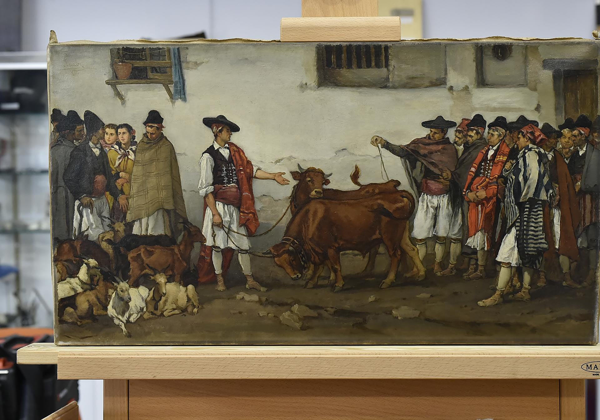 ‘Venta de novillos’ (1872) regresa a sus orígenes. El cuadro que Eduardo Rosales (Madrid, 1836-1873) pintó durante una de sus dos estancias en … Murcia –inspirado por las gentes y las costumbres de estas tierras– pasa por el taller para un chequeo antes de que se exponga al público. El óleo, firmado y fechado, de 38,3 x 69,2 centímetros, fue adquirido en subasta en marzo del año pasado por el Ministerio de Cultura, que pagó casi 61.000 euros, con destino a agrandar la colección del Museo de Bellas Artes de Murcia (Mubam), de titularidad estatal pero gestionado por la Comunidad Autónoma.