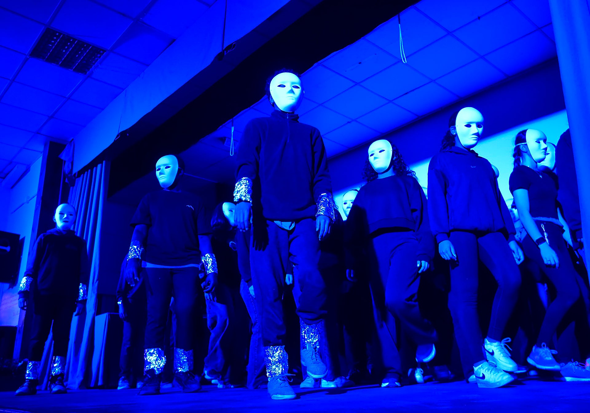 Actuación de los alumnos durante la inauguración en una obra inspirada en Asimov y Turing y sus dilemas entre ética, humanidad, máquinas y robots.