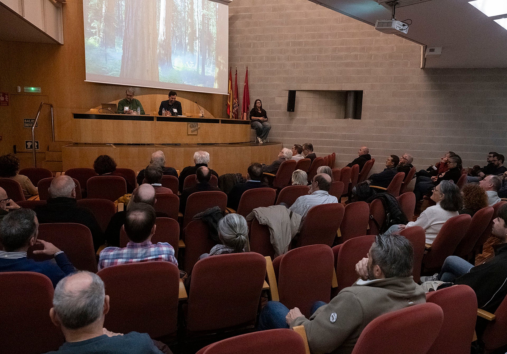 El salón de actos del Palacio Pedreño durante la intervención de Joan Fontcuberta en Cartagena.