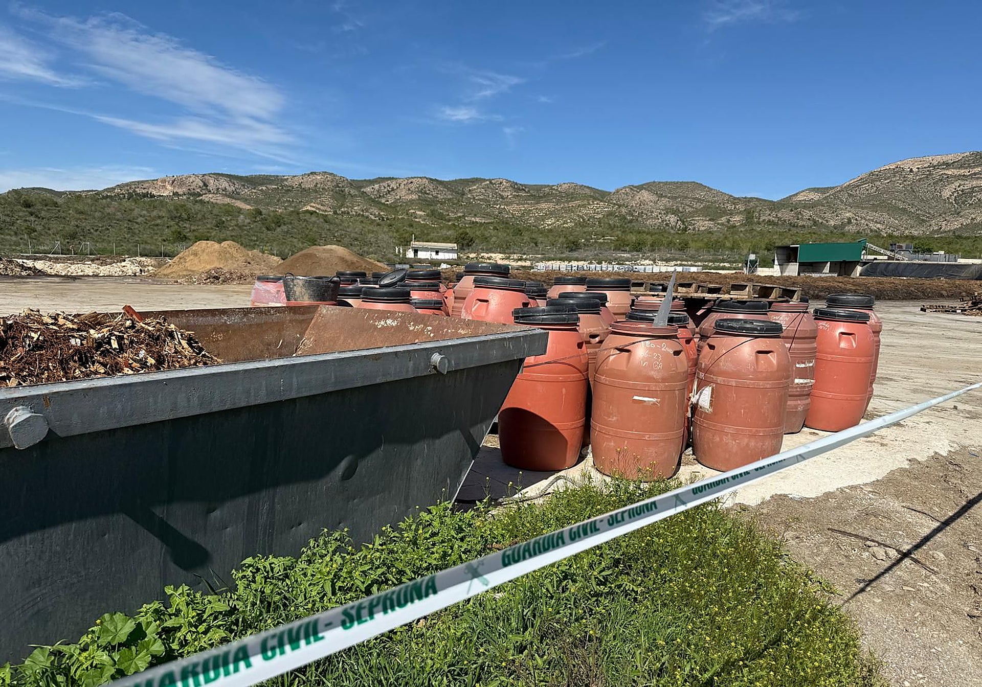 Mientras, la Fiscalía de Medio Ambiente de la Región de Murcia continúa con las investigaciones por un presunto delito contra el medio ambiente derivado de la gestión irregular de residuos y de los lixiviados. Solicitó información al Ayuntamiento, la Comunidad Autónoma y la CHS. Según fuentes del Ministerio Fiscal, la información recabada hasta ahora por el Seprona descartó recientemente la existencia de residuos peligrosos en el interior de la planta. Los agentes encontraron en el recinto restos de tejidos vegetales como cartón y plástico; residuos de tejidos animales; residuos de tejidos vegetales; productos de alimentación caducados; lodos y aguas residuales industriales; lodos de depuradora; restos de poda; plumas de aves y heces de animales y estiércol. No obstante, en otras inspecciones la Consejería sí que detectó el manejo irregular de residuos peligrosos.