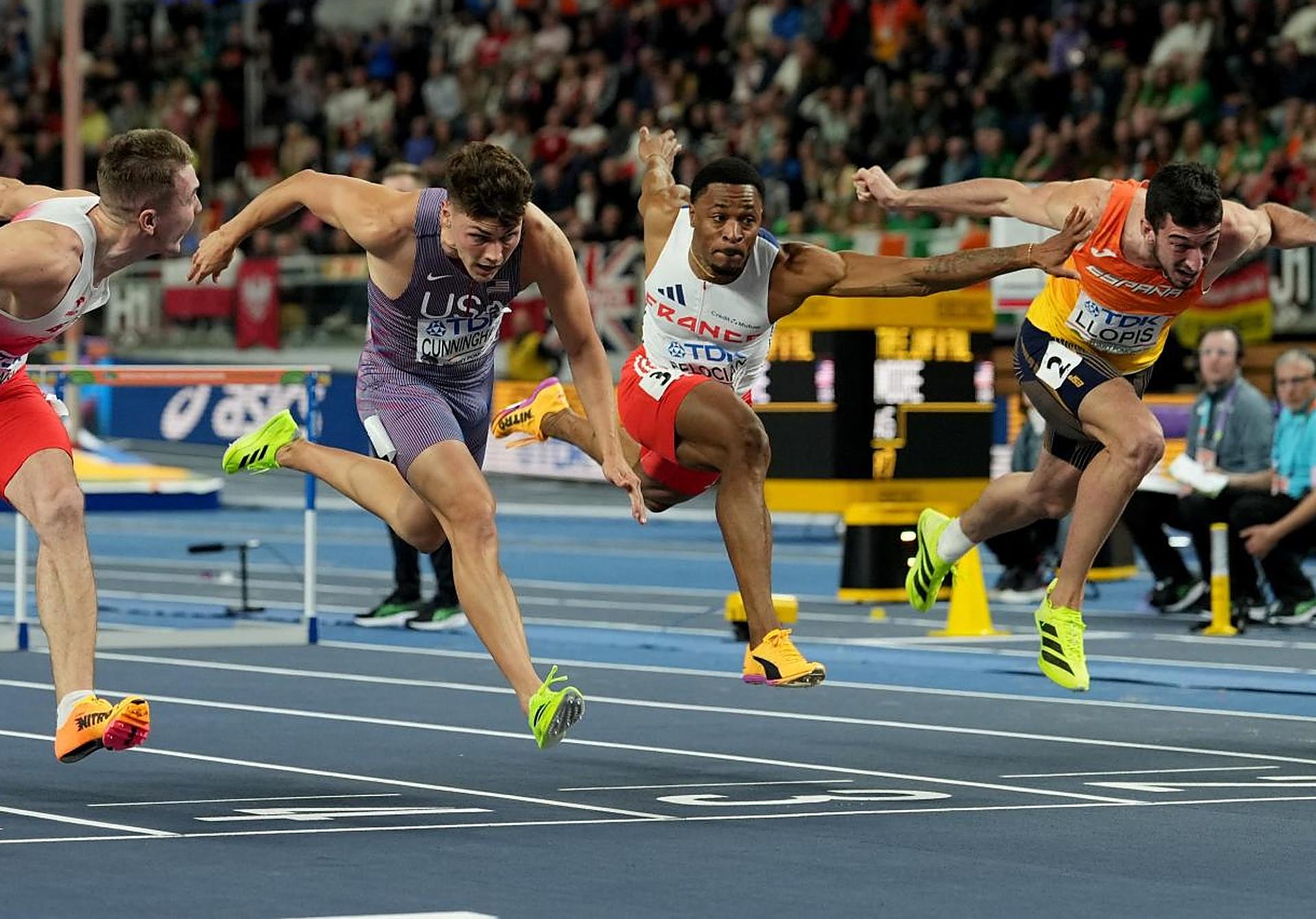 El polaco Jakub Szymanski se proclama vencedor de la final masculina de 60 metros vallas, por delante del español Enrique Llopis, el estadounidense Trey Cunningham y el francés Wilhem Belocian.