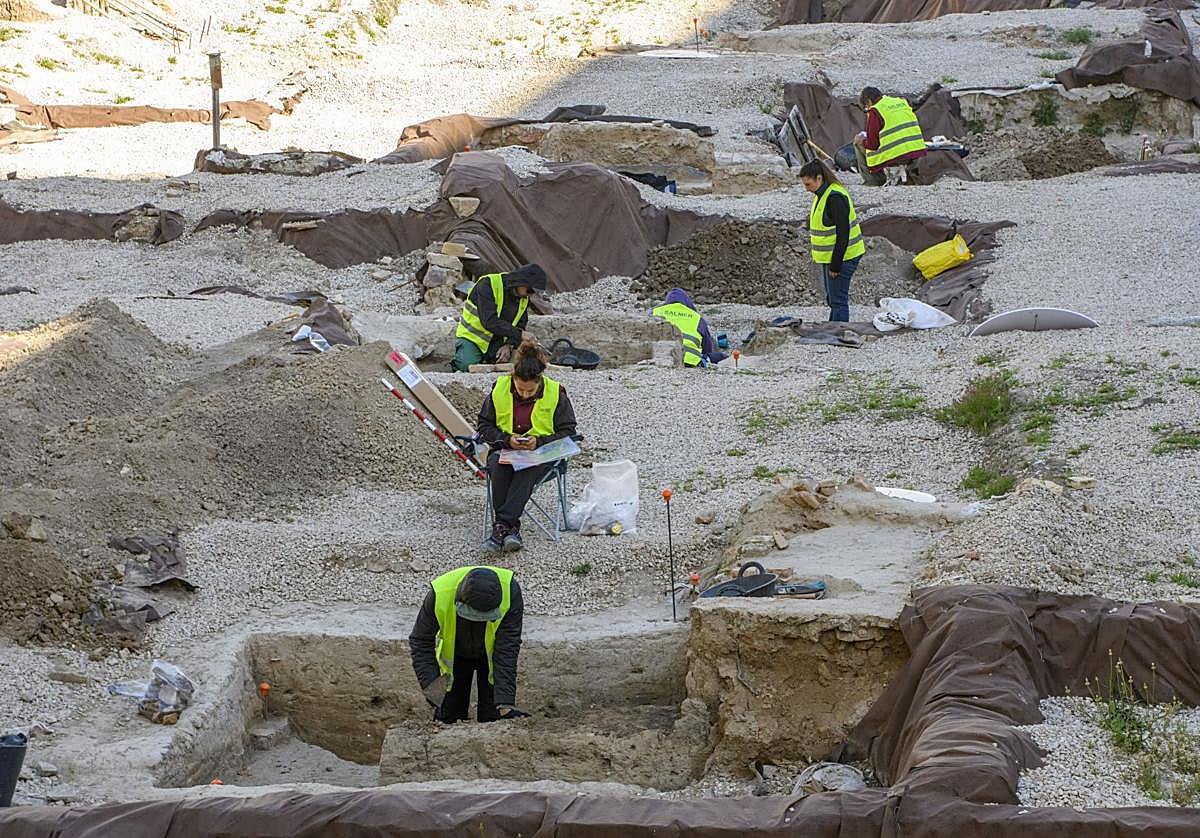 Las primeras labores para determinar dónde ubicar los pilares sobre los que sostener esta zona verde están comenzando a arrojar hallazgos curiosos. Uno de ellos es la aparición, dentro de la vivienda 35 —una vivienda amplia con un patio central—, de lo que se puede considerar como una «caja fuerte medieval». Se trata, en este caso, ni más ni menos, de una gran vasija enterrada en un hueco bajo el terreno, que los propietarios del inmueble cubrían con una esterilla, una alfombra o un mueble para lograr una «ocultación», remarca Sánchez.