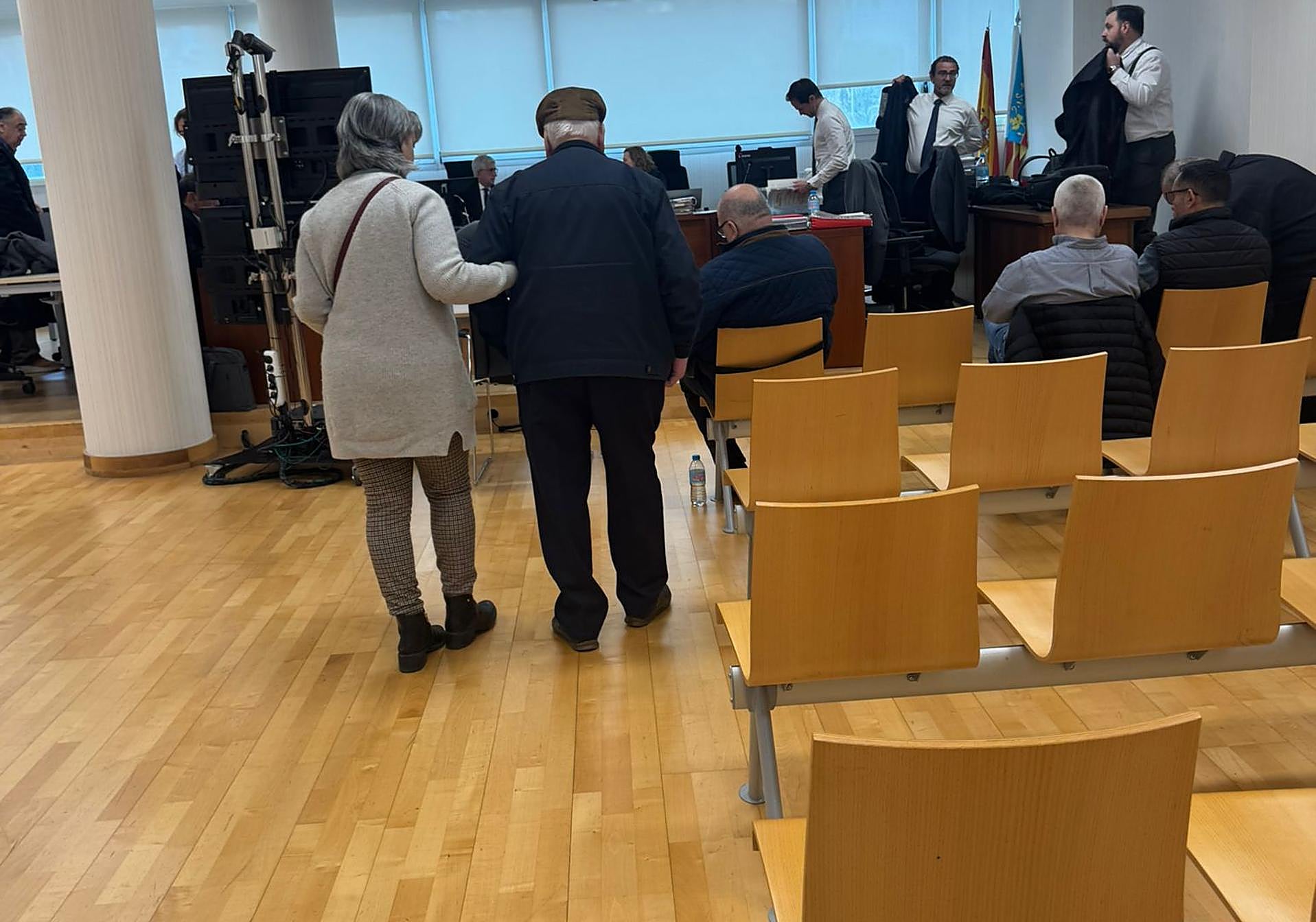 Varios acusados, de espaldas, durante el juicio en Elche.
