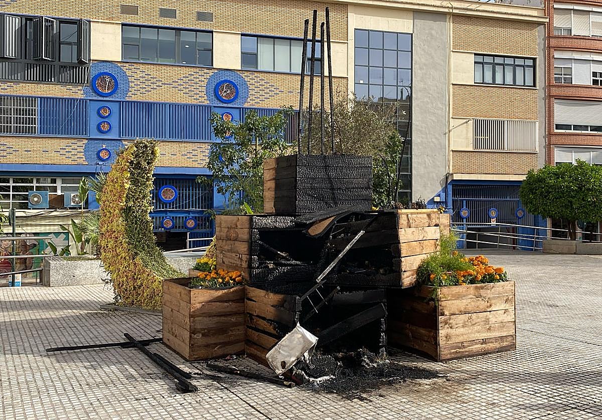 Un incendio ha consumido en la madrugada de este viernes el monumento floral a las tres culturas instalado en la plaza de Europa de Murcia. … El fuego, que se originó en torno a las 1.30 horas por motivos que aún se desconocen, ha arrasado la cruz cristiana y la estrella de David judía. Solo ha quedado en pie la media luna, el símbolo del islam de los tres religiosos que componían la instalación.