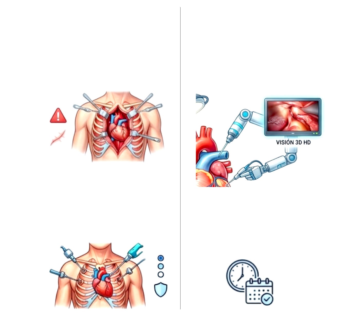 Requiere una incisión en el esternón, conlleva un mayor riesgo de infección, una recuperación lenta y mayores tasas de transfusiones sanguíneas.