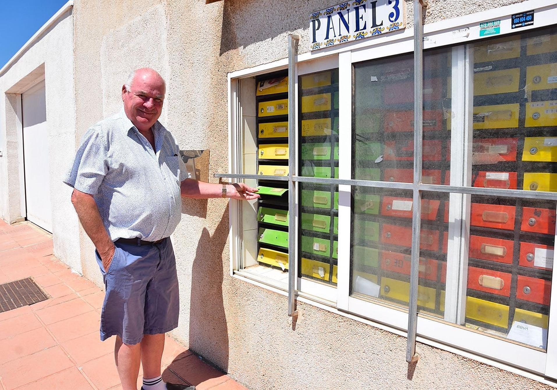 El irlandés Jack Hanley, en el buzón comunitario de la urbanización San Blas, en Santiago de la Ribera.